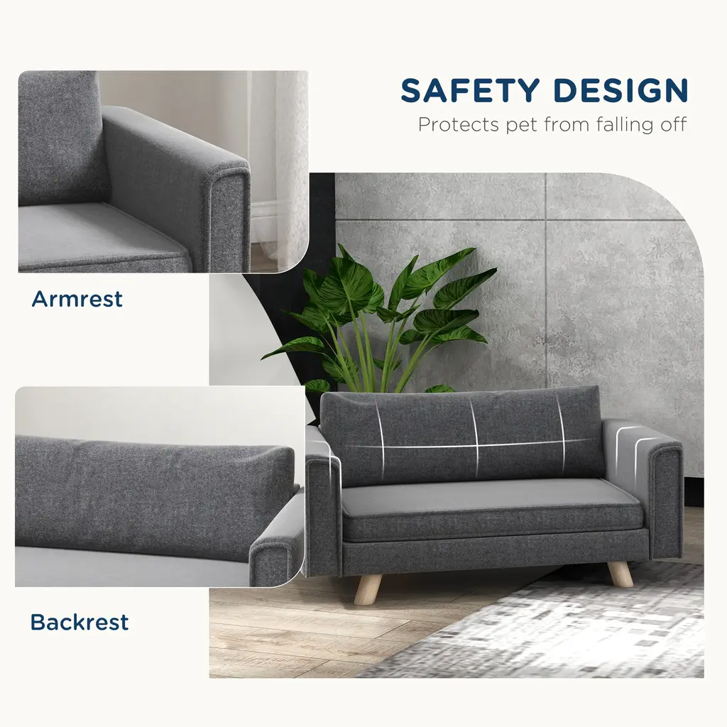 Pawhut Raised Dog Sofa, Elevated Pet Sofa For Small And Medium Dogs With Removable Seat And Back Cushions, Anti-Slip Pads, Gray - Gray