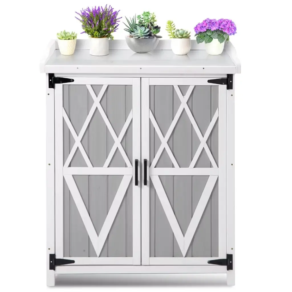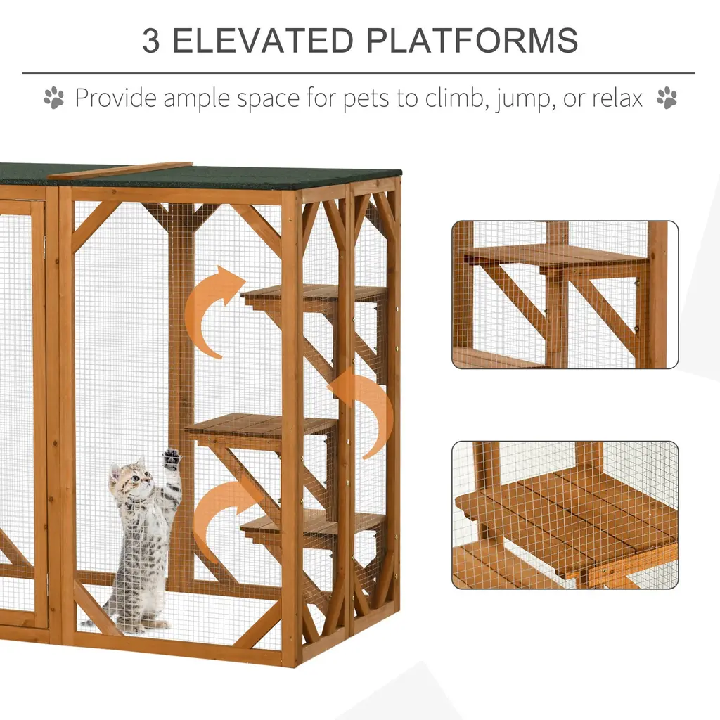 Pawhut Wooden Outdoor Cat House Catio Kitten Enclosure Indoor Cage With Asphalt Roof, Multi-Level Platforms And Large Enter Door - Grey