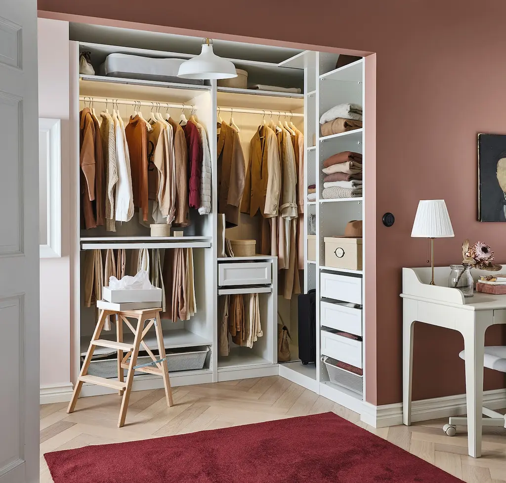 PAX Add-on corner unit with 4 shelves - white 20 7/8x22 7/8x79 1/8 ". 10-year Limited Warranty. Read about the terms in the Limited Warranty brochure. If you want to organize inside you can complement with interior organizers from the KOMPLEMENT series. Doors and hinges are sold separately.