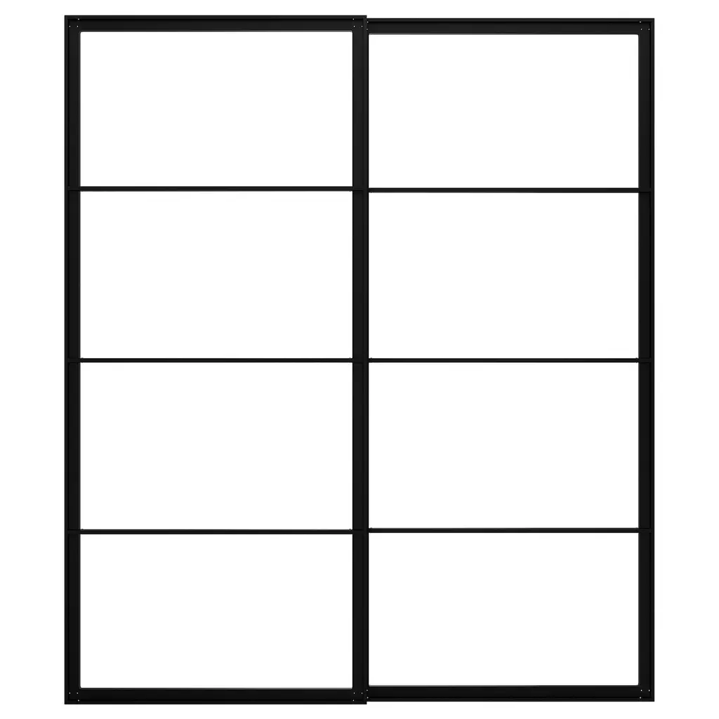 PAX Pair of sliding door frames & rail - aluminum 59x79 1/8 ". 10-year Limited Warranty. Read about the terms in the Limited Warranty brochure. Sliding doors allow more room for furniture because they don’t take any space to open. Two people are needed to assemble this furniture.