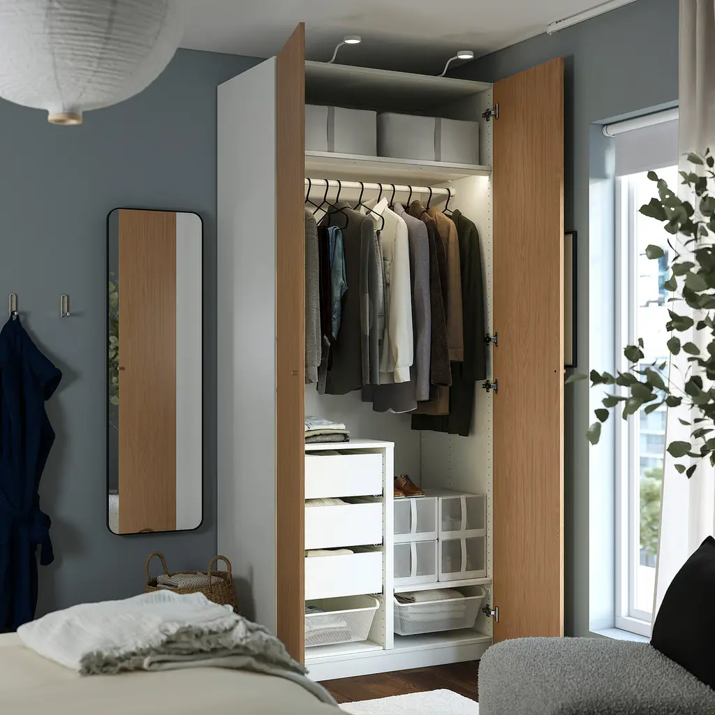 Pax / Storklinta Wardrobe Combination - White/oak Effect 39 3/8x23 5/8x93 1/8 "