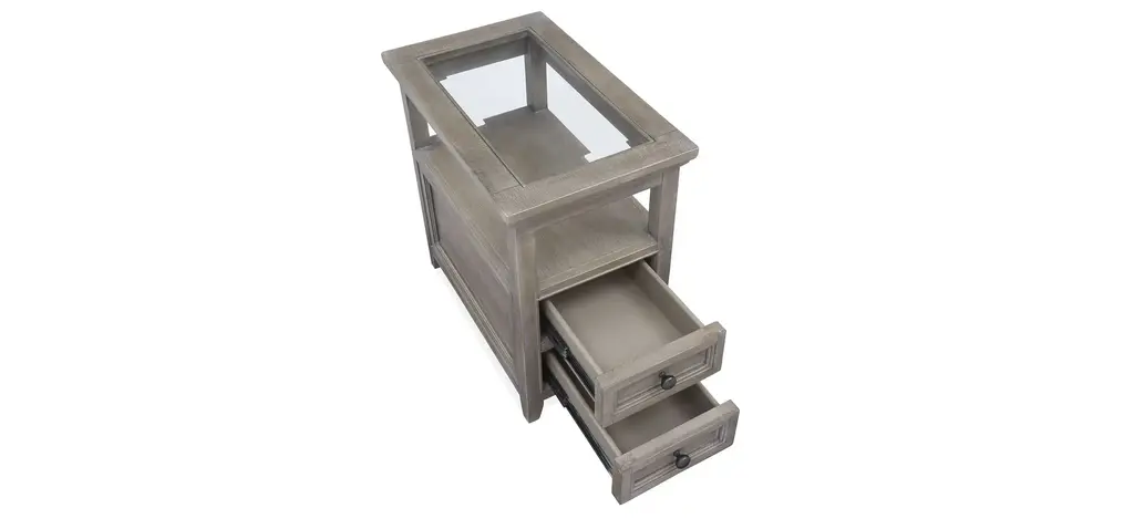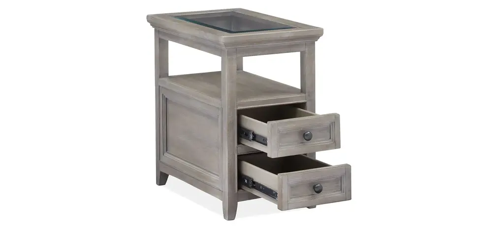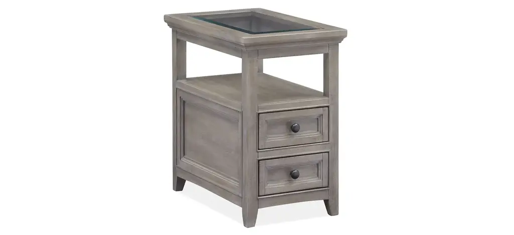 Stylish and sophisticated, the Paxton Place chairside table combines classic silhouettes with tasteful details. Finished in a dreamy dovetail gray with weathered bronze drawer hardware, this table makes the perfect mate to your favorite sofa, sectional or chair. Designed to maximize space and functionality, the table boasts storage and display options that add distinctive character to a space. Choose this Paxton Place chairside table to finish off your design plan and then sit back and relax in style.