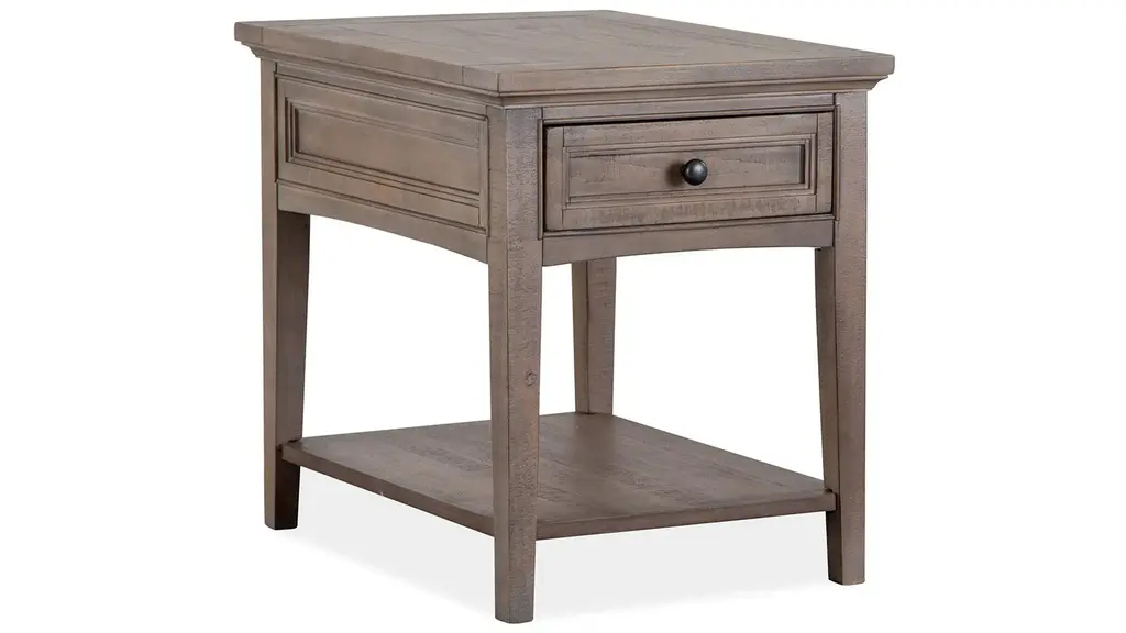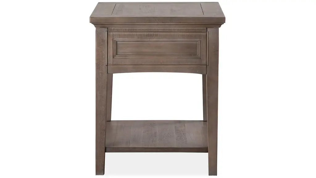 Stylish and sophisticated, the Paxton Place end table combines classic silhouettes with tasteful details. Finished in a dreamy dovetail gray with weathered bronze drawer hardware, this table makes the perfect mate to your favorite sofa, sectional or chair. Designed to maximize space and functionality, the table boasts storage and display options that add distinctive character to a space. Choose this Paxton Place end table to finish off your design plan and then sit back and relax in style.