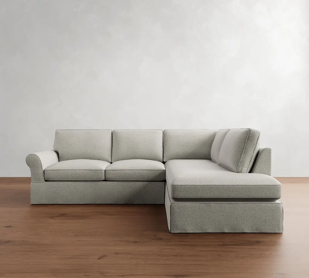 Pb Comfort Roll Arm Slipcovered Return Bumper Sectional (124")