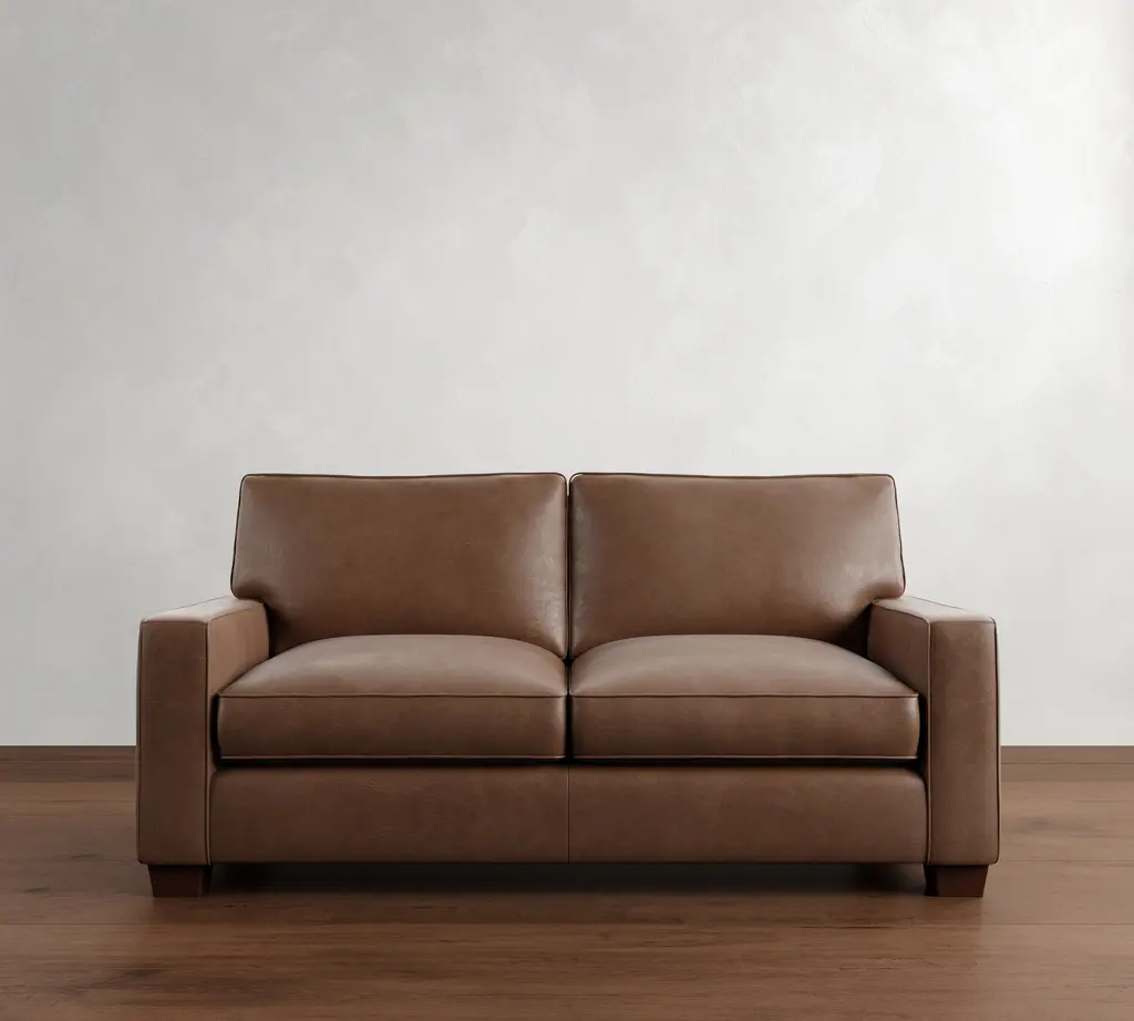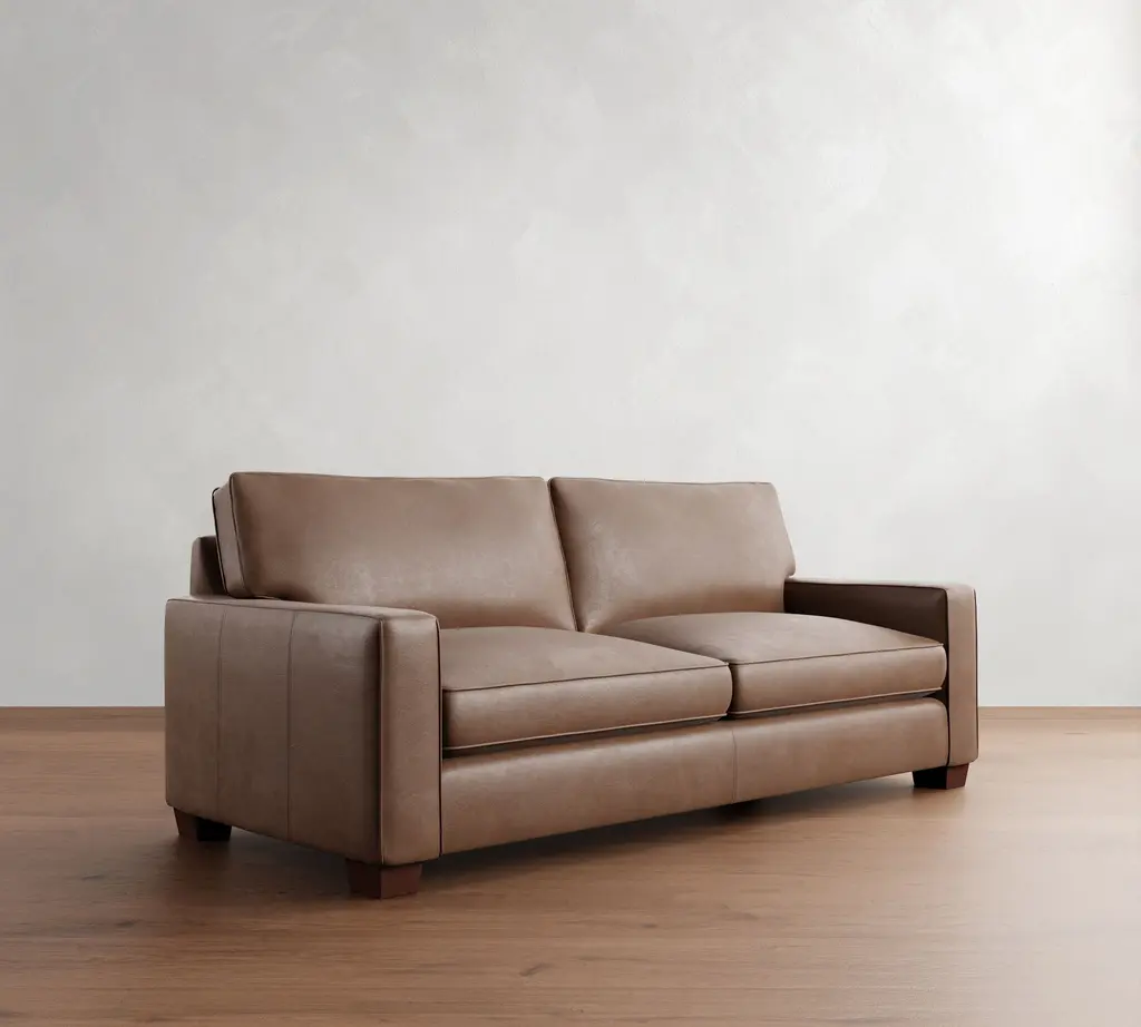 Pb Comfort Square Arm Leather Sofa (62"–88")