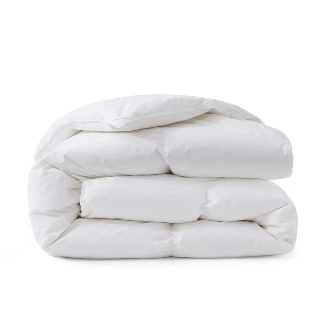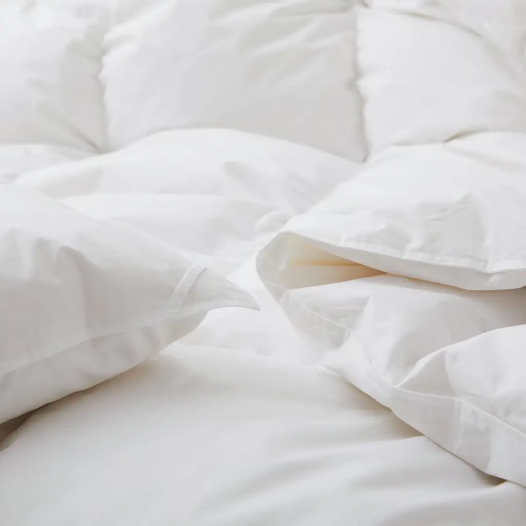 Crafted with a tightly woven, down-proof 100% cotton shell, this duvet insert effectively prevents feather escape while promoting airflow for a cooler, more restful sleep. It's filled with 100% natural feathers that deliver breathable warmth and a balanced, medium-weight feel without added bulk. The sewn-through construction keeps the fill evenly distributed, helping maintain its shape and loft over time. Designed with eight sturdy loops four on the corners and four along the edges, it stays securely attached to your duvet cover, reducing movement while you sleep. Ideal for use in all seasons and various climates, this insert is also machine washable for easy cleaning and care. A great addition to elevate both comfort and style in your bedding setup.