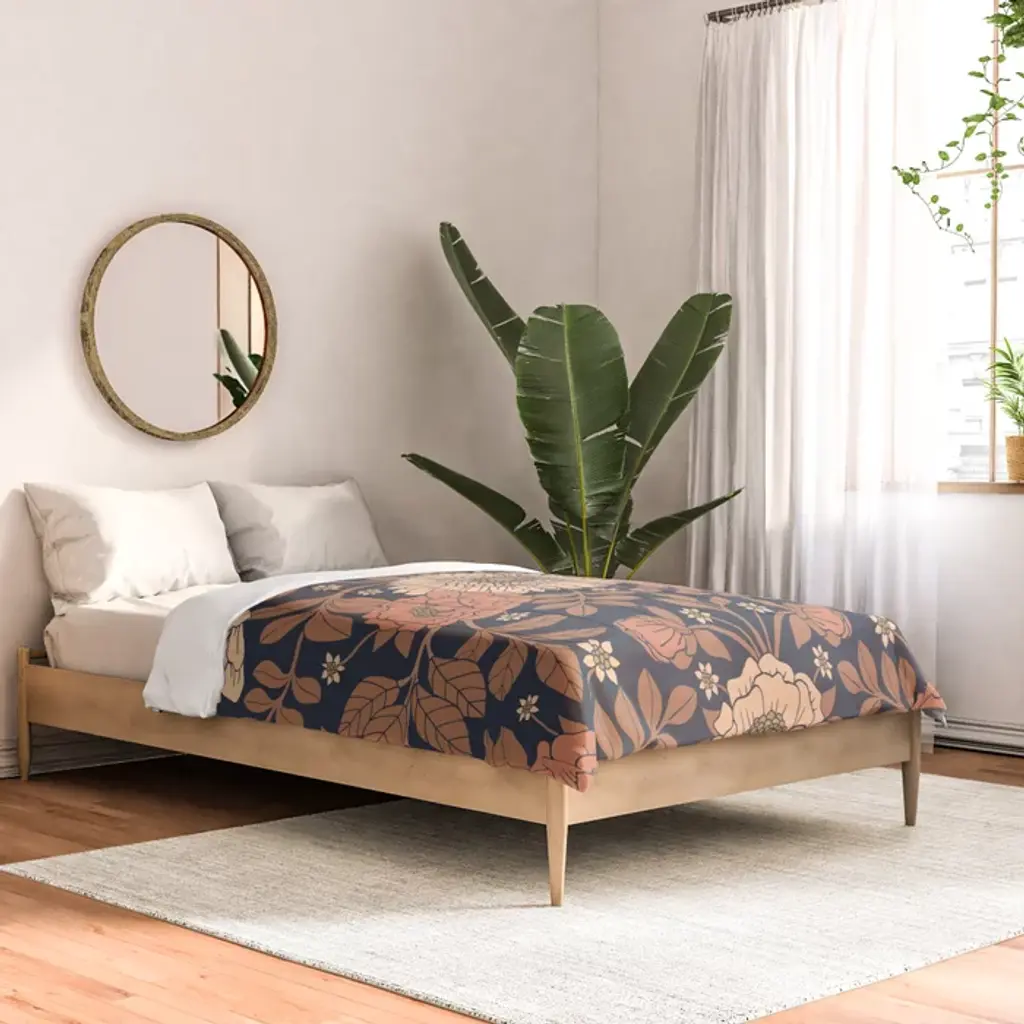 Peach, Dusty Rose, Mauve & Blue-Gray Floral Pattern Comforter