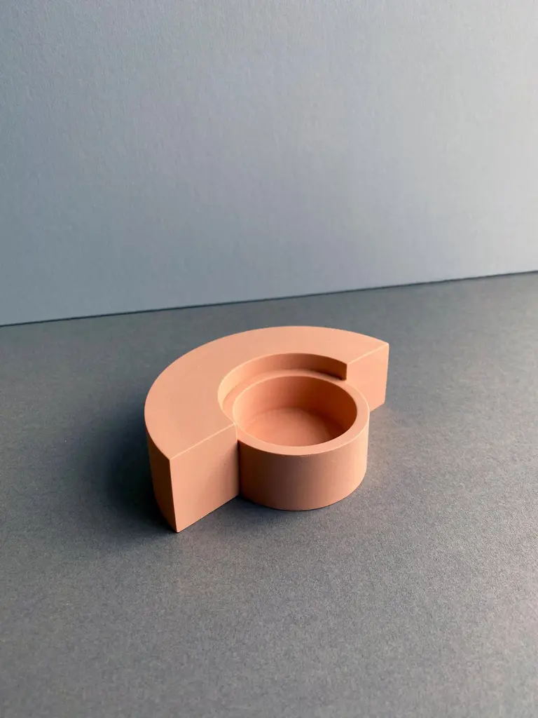 Peach Mould Project by Theodora AlfredsdottirUniqueMaterials: JesmoniteDimensions: 120 x 90 x 35 mmTheodora Alfredsdottir is a product design studio based in London. Theodora is an Icelandic product designer. She holds a bachelor’s degree in product design from the Iceland Academy of the Arts (2012) and a master’s degree in Design Products from the Royal College of Art in London (2015).Storytelling through objects; Theodora’s work revolves around the narrative an object can inhabit and exploring ways of objectifying that narrative. She's interested in the way an object can act as documentation of its manufacturing process; a record of what went on between the machine, tools, craftsman and Material as well as it can communicate its origin and former life. In short, the object creates its own factual narrative. That often leads to the discovery of unexpected qualities as well as it gives the user a subtle opportunity to reconsider our Material world and explore value in a different way.