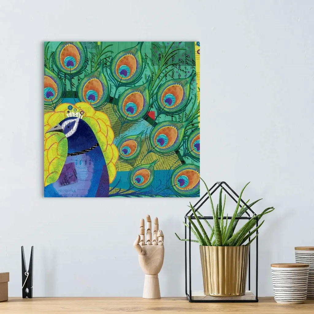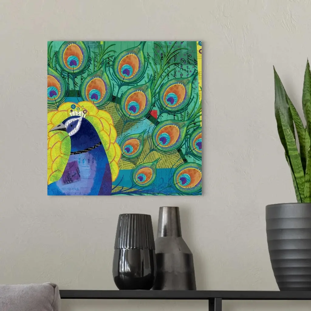 Bright plumes and a rich palette make this a dynamic decor look.