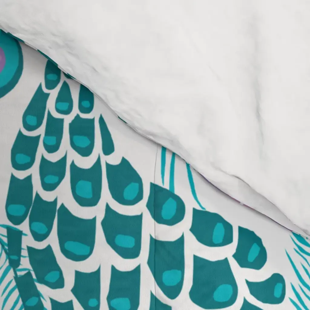 Peacock Pattern Cute Bird Nursery Minimal Home Decor Peacocks Plume Feathers Comforter