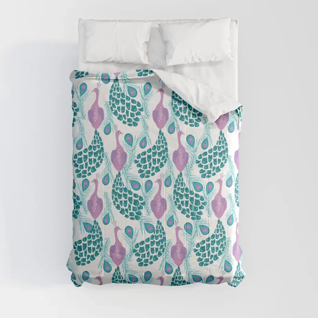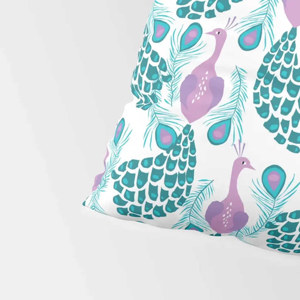 Peacock Pattern Cute Bird Nursery Minimal Home Decor Peacocks Plume Feathers Pillow Sham