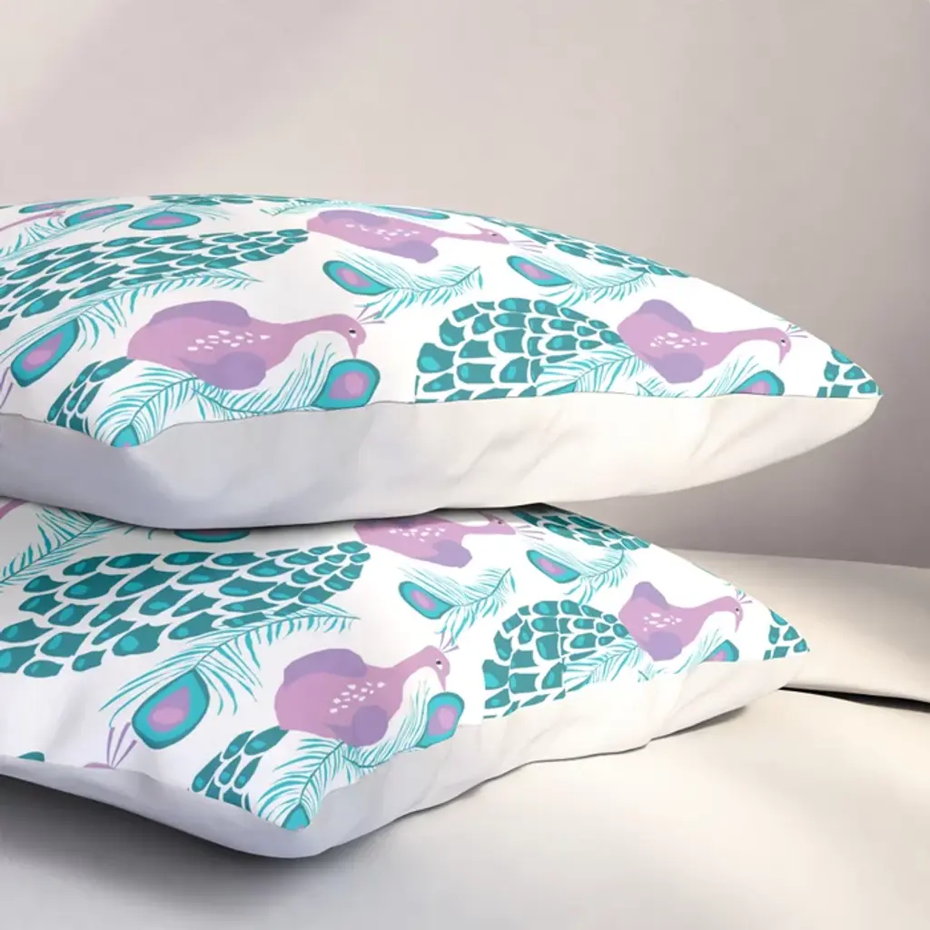 Peacock Pattern Cute Bird Nursery Minimal Home Decor Peacocks Plume Feathers Pillow Sham