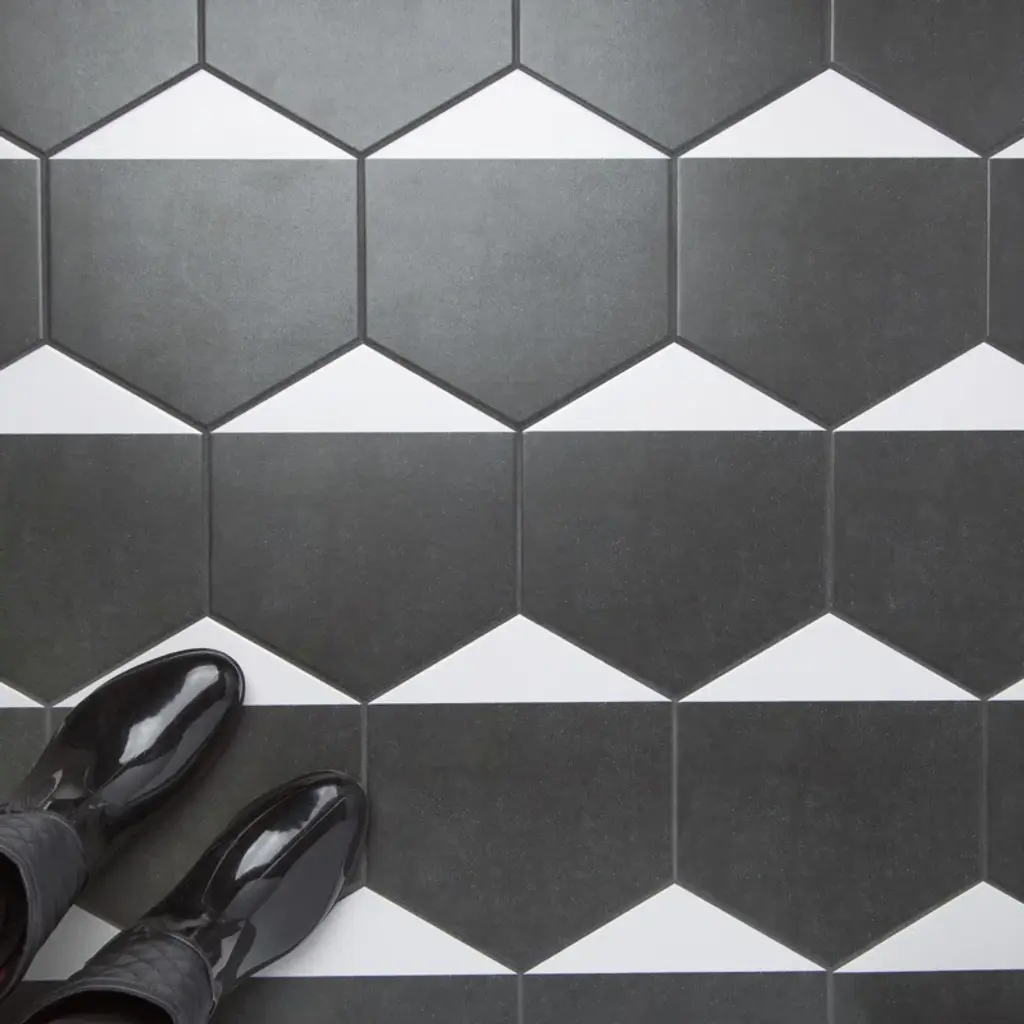These tiles are ready to add some super stylish modern vibes to your space and, honestly, we're kind of thinking about putting them in every room. They're crafted in Spain from porcelain, and feature a hexagonal design with an asymmetric black and white pattern for some major sleek vibes. Plus, they're rated for normal traffic and resist water and mildew, so they're great for your kitchen backsplash or bathroom floor. Each tile measures 8.63'' W x 9.88'' L and arrives in 25-piece cartons
