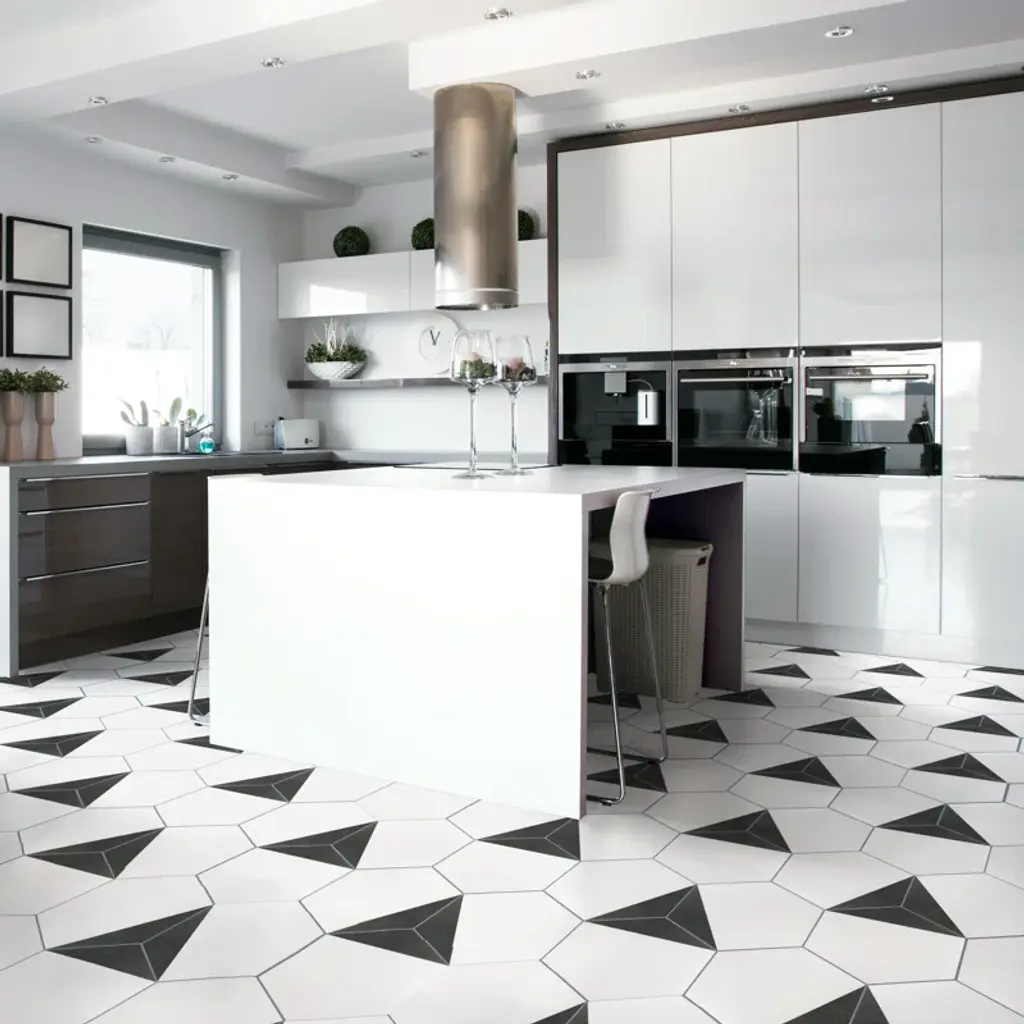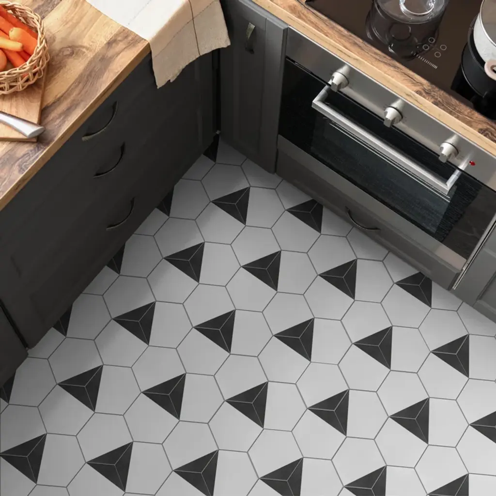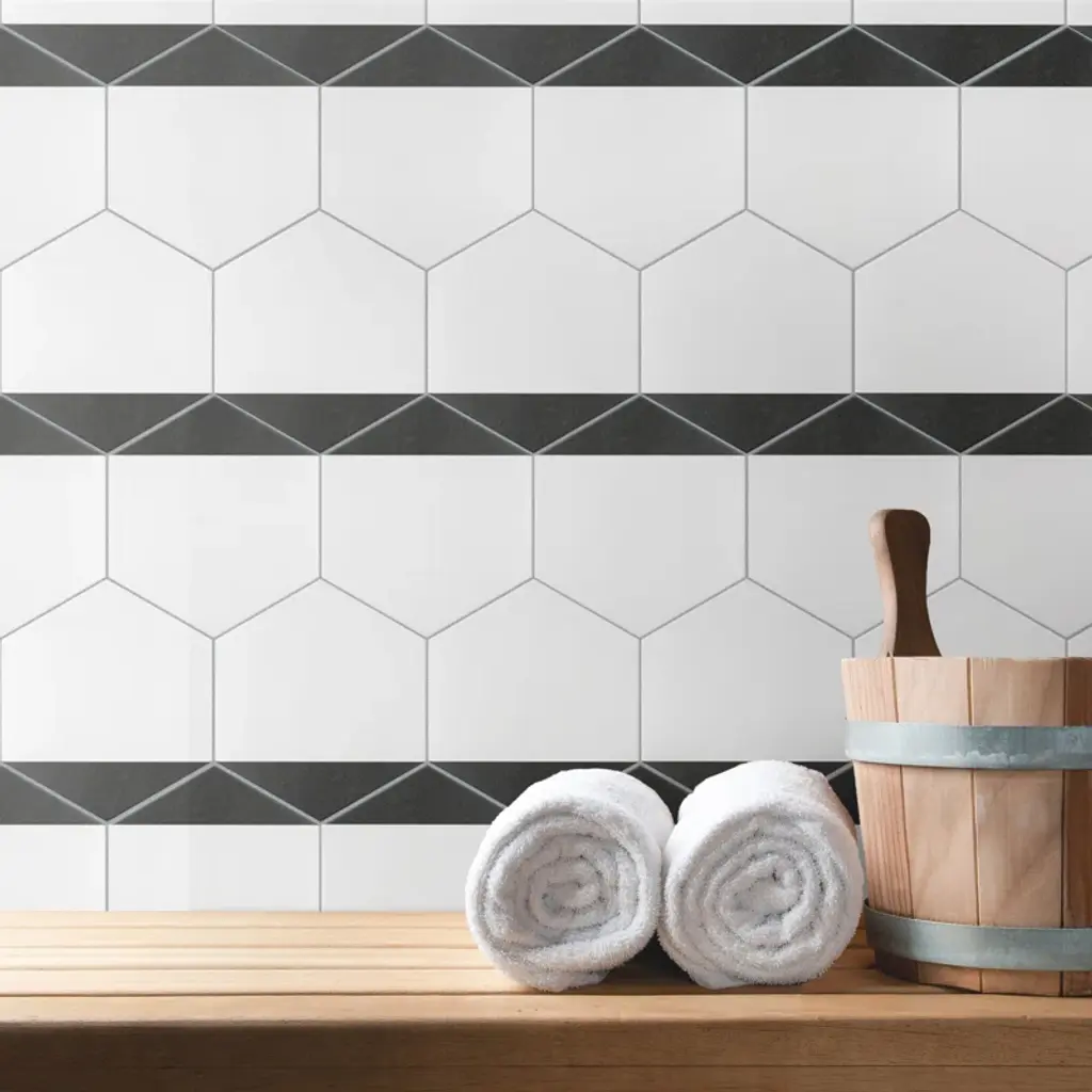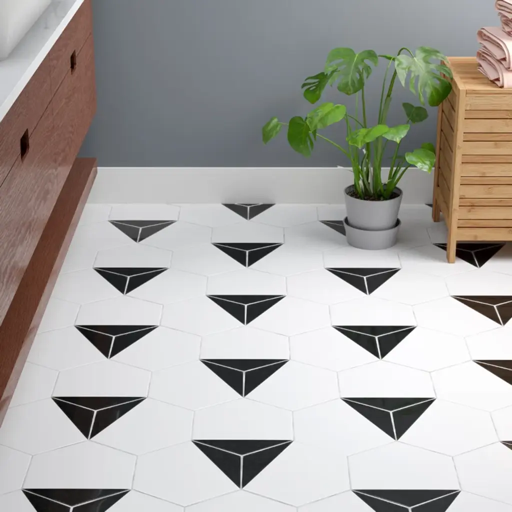 These tiles are ready to add some super stylish modern vibes to your space and, honestly, we're kind of thinking about putting them in every room. They're crafted in Spain from porcelain, and feature a hexagonal design with an asymmetric white and black pattern for some major sleek vibes. Plus, they're rated for normal traffic and resist water and mildew, so they're great for your kitchen backsplash or bathroom floor. Each tile measures 8.63'' W x 9.88'' L and arrives in 25-piece cartons