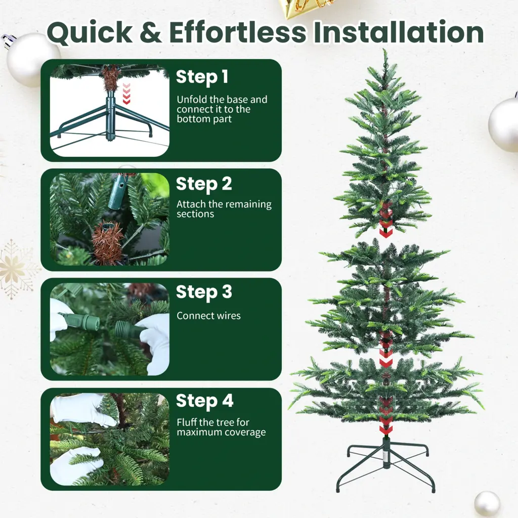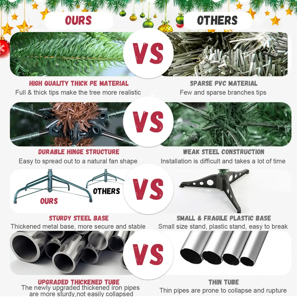 Whether you're looking to conserve resources or you're looking for convenience, this artificial Christmas tree will be the perfect choice for you. This tree comes with metal hinges and a collapsible base to make loading and unloading easier. Moreover, we provide you with hundreds of individual branch tips for hanging a variety of decorations. Meanwhile, hundreds of built-in warm incandescent lights will add sparkle to your holiday season.Authenticity and beauty at the same time:Advantages of green artificial Christmas trees:Easy Assembly & Adjustment:Your perfect Christmas decoration choice:If you have any questions about our modern green artificial Christmas tree or need further information, please feel free to contact our customer service team. We will be happy to answer your questions and make sure you have a pleasant experience during your purchase and use.Description: