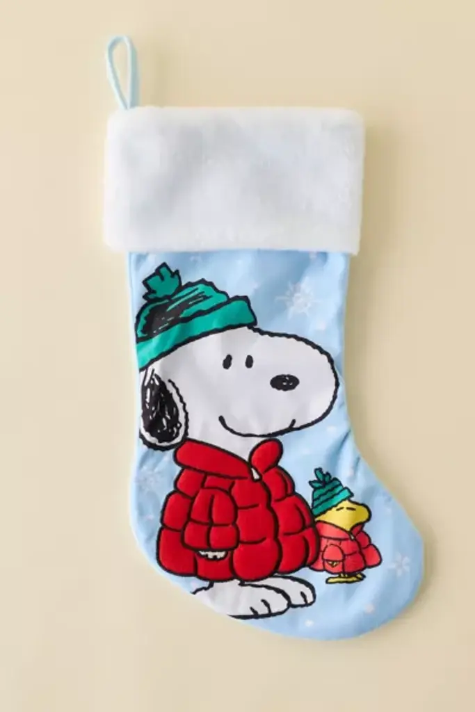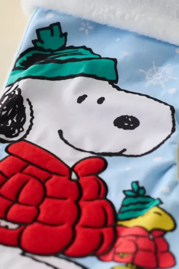Refresh your holiday decorations with this stocking featuring cozily dressed Snoopy & Woodstock graphics printed at the front with a fluffy cuff lining the upper edge. **Features** \- Peanuts Snoopy & Woodstock Holiday Stocking \- Refresh your holiday decorations with this Peanuts stocking \- Finished with Snoopy graphics at the front \- Fuzzy cuff at the top of the stocking \- Ready to hang with top loop **Content + Care** \- 100% Polyester \- Spot clean \- Imported