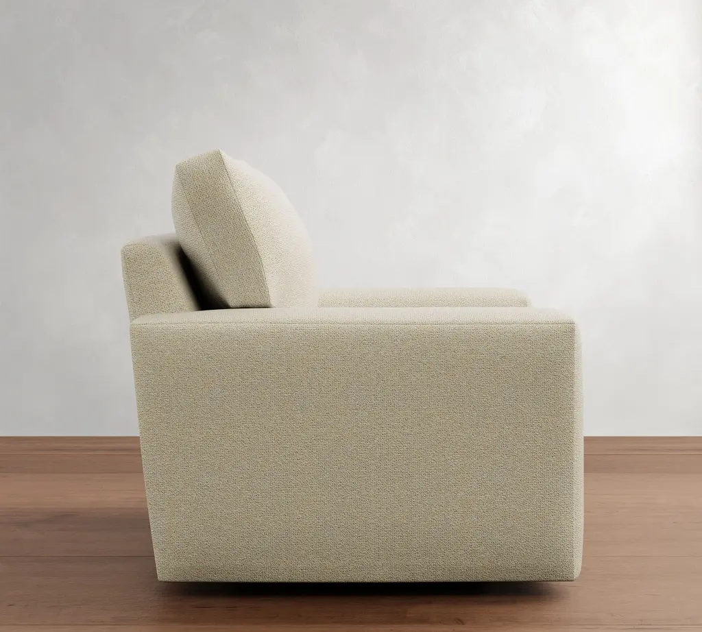 One of our most welcoming collections, Pearce has a livable design and universal appeal. The generous arm, deep seat, and comfy down-blend cushion make this a family room favorite for lounging. We love the transitional look, which sits well in any space. And the swivel makes this a real head-turner.