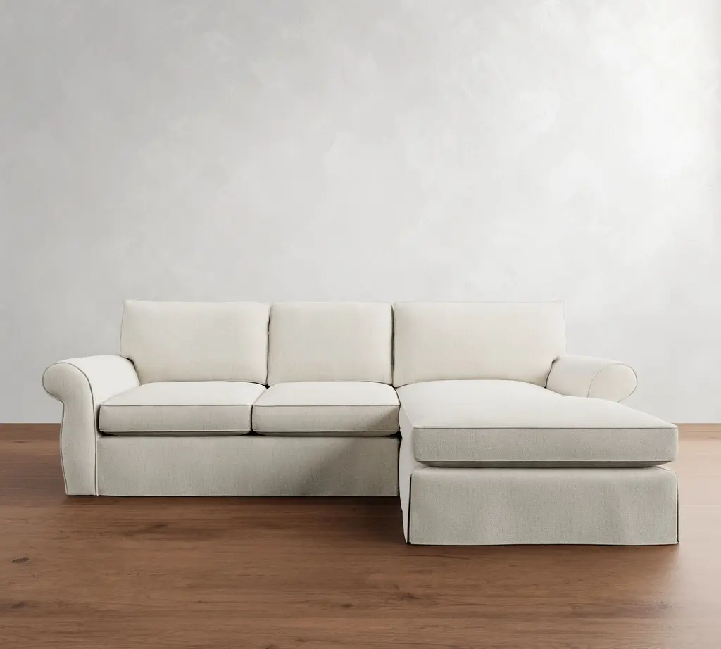 Pearce Roll Arm Slipcovered Chaise Sectional (110"–150")