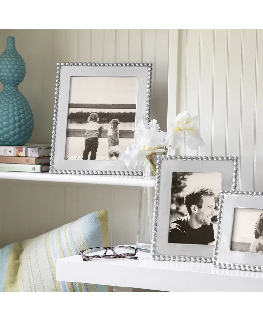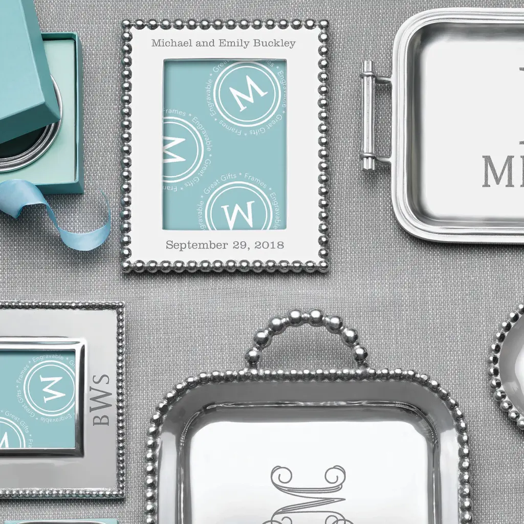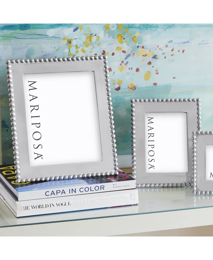 Bordered with pearl-like beaded trim and rendered in crisp, gleaming aluminum, the pieces of the Pearled Collection by Mariposa offer a simple yet luxurious look for your home.