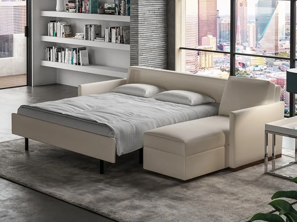 Pearson’s sleek track arms pair perfectly with subtle designer details to create a beautiful, yet effortless look. *Price above reflects grade 1 fabric and premiere mattress. For other options, please message or call us at 410-381-7577. NO BARS. NO SPRINGS. NO COMPROMISE. Pearson provides sweet dreams every night with the Patented Tiffany 24/7™ Sleep System No Bars, No Springs, and No Compromise™. Stretch out with a true 80″ of sleeping space, 8″ more sleeping space than traditional Sleepers. Experience the ultimate in comfort with a 5″ plush, high-density foam Premier mattress with Crypton® ticking. Mattress upgrade options include Gel or Tempur-Pedic®. The Pearson requires zero wall clearance and can be disassembled to fit through any narrow door or hallway. Rest assured with your purchase, the Pearson comes with a lifetime warranty on the frame and 10-year warranty on the mechanism. WHY AMERICAN LEATHER? INNOVATION. DESIGN. QUALITY. SPEED. Founded by engineers in 1990, American Leather® was created on the belief that three months is too long to ever wait for a piece of customized furniture. Our founders believed that 30 days was about right to take your order from concept to completion. In the time since, we have set the standard for custom furniture—always to you in 30 days. What began as a small team in a borrowed facility has grown to more than 600 employees in Dallas, Texas, housed in a state-of-the-art 350,000-square-foot factory. Founded by engineers in 1990, American Leather® was created on the belief that three months is too long to ever wait for a piece of customized furniture.
