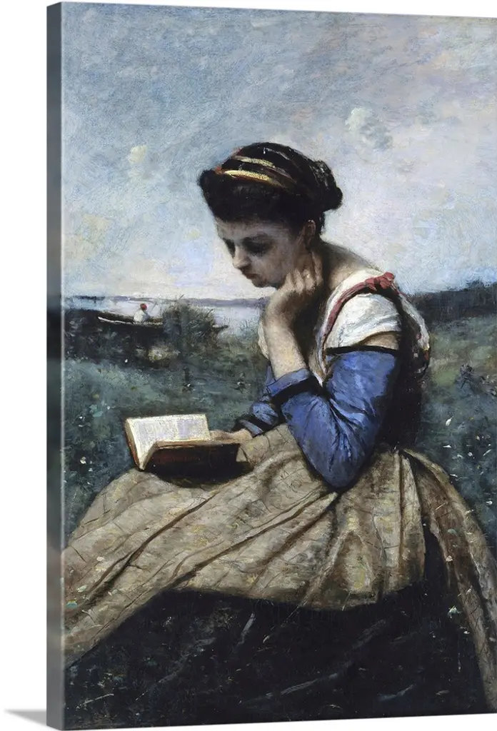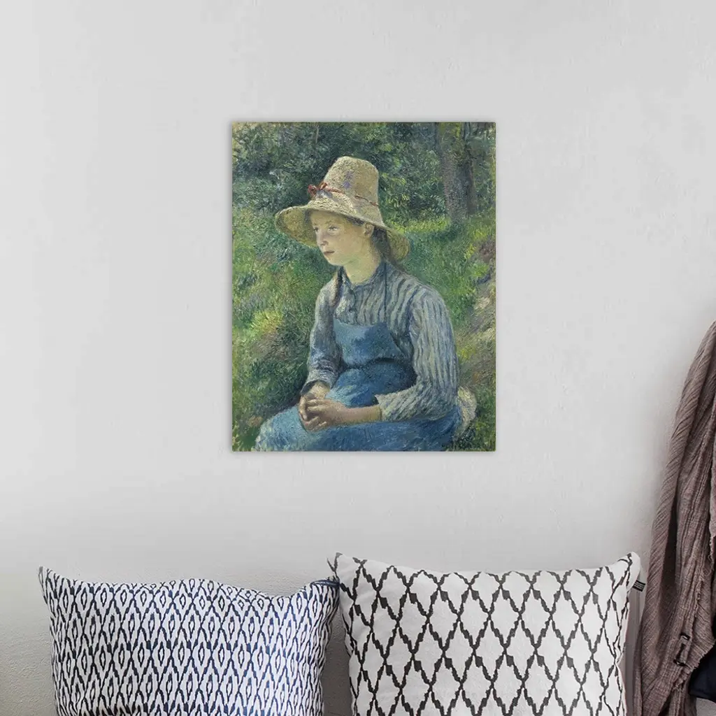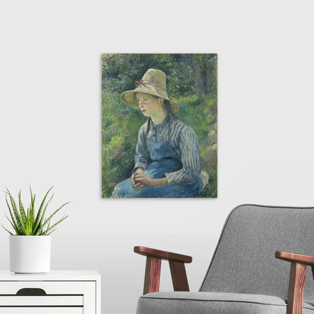 Camille Pissarro (French, 1830 - 1903). Summer scene with girl sitting wearing hat in shade.