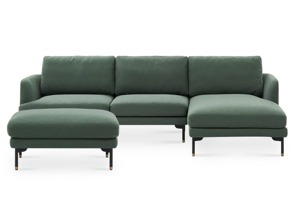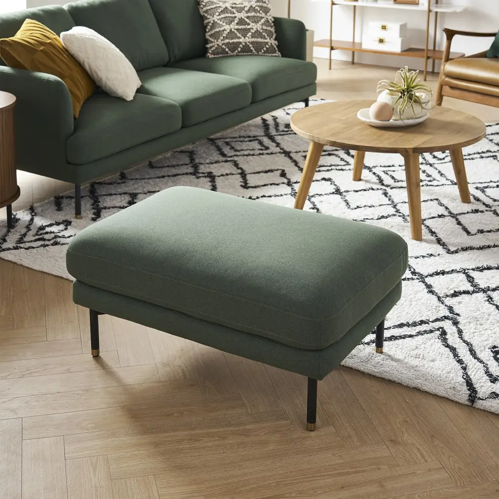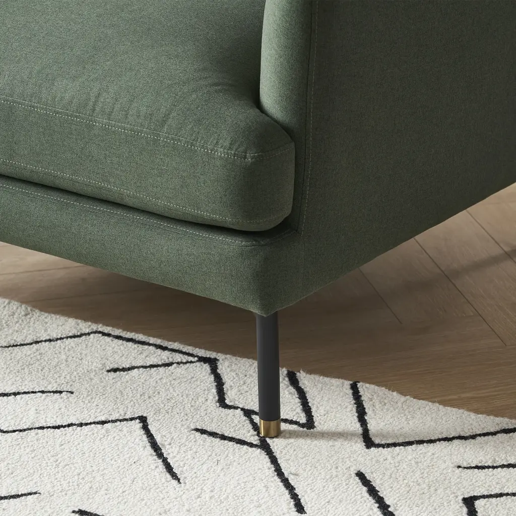 Pebble adds sophisticated simplicity and contemporary charm with its gently curved frame and metal brass-capped legs.