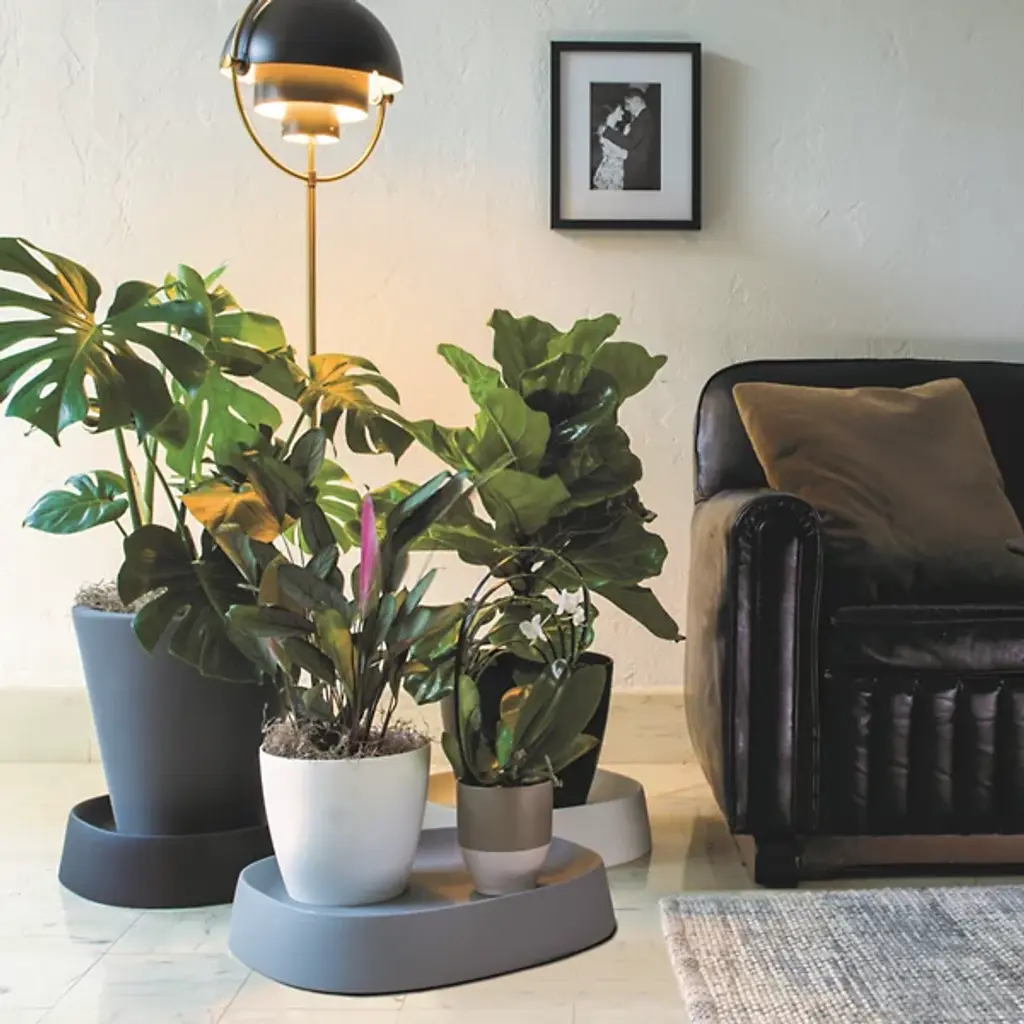 Presented by Crescent Garden, these modern Pebble Modern Plant Caddy with Hidden Wheels are elevated from the mundane renditions of plant holders. Not only are their heavy-duty casters hidden underneath, but these caddies have an angled edge allowing you to decorate the base of your planters with pebbles, sand, green moss, or any substrate to create your own style.