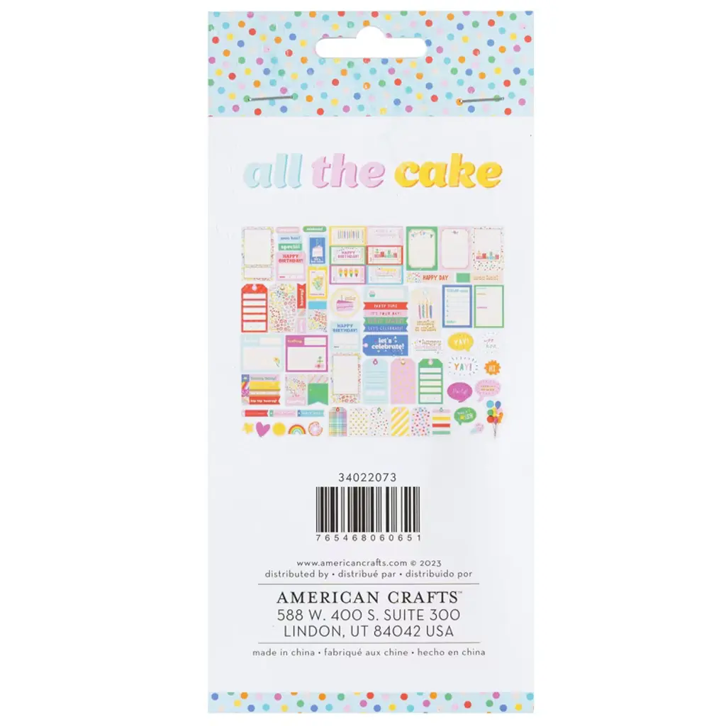 All the Cake by Pebbles, where birthdays come to life! Experience the joy of celebrations through this vibrant collection filled with balloons, cake, and all things Happy Birthday! This collection is perfect for your next birthday celebration whether you need to make party invitations, party favors, or just decorations. This collection is filled with fun and happy colors and the perfect addition of foil to add shimmer! Washi tape is the perfect versatile tool for all your beautiful creations! Add some awesome ephemera pieces to scrapbooks, cards, journals, and more for extra color and style. These ephemera pieces even feature vellum pieces and gold foil finish pieces to add an elegant shine. This package contains 59 ephemera icons in a variety of shapes, colors, and styles with gold foil finish.