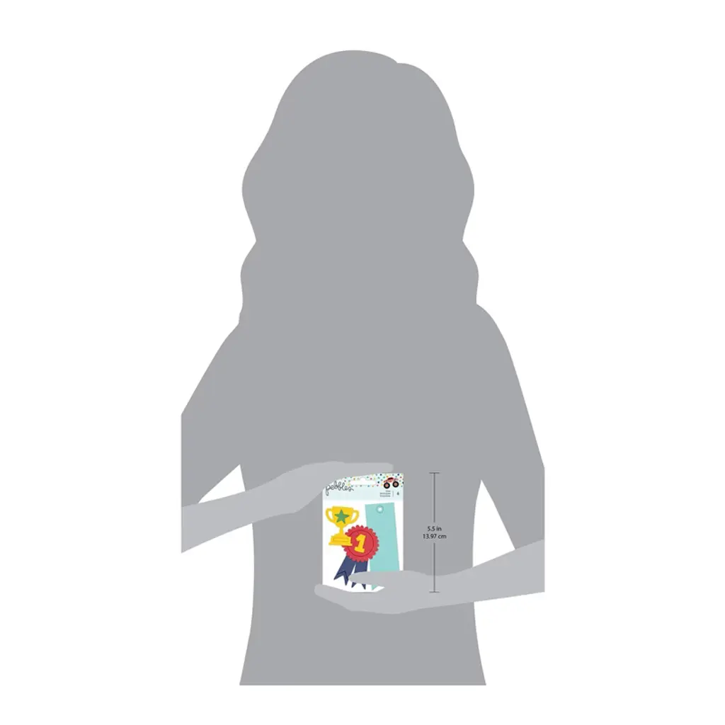 Introducing Cool Boy by American Crafts! Get ready to craft amazing memories that are cool, playful, and rad. This collection is filled with dinosaurs, monster trucks, lightning bolts, sports, and gaming. It's the perfect collection to craft with your boy! This metal die set is the perfect tool for adding intricate and professional-looking designs to your projects. Crafted with precision and durability, this set offers a variety of unique shapes and patterns, allowing you to effortlessly cut through various materials and elevate your crafts to the next level. This package includes 6 metal die-cuts in a variety of shapes.