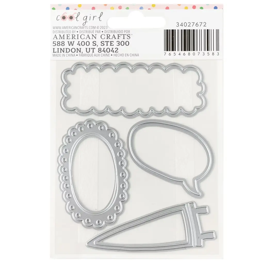 Introducing Cool Girl by American Crafts! Get ready to craft amazing memories that are cool, playful, and sweet. This collection is filled with unicorns, rainbows, sweet treats, and magic. It's the perfect collection to craft with your girl! This metal die set is the perfect tool for adding intricate and professional-looking designs to your projects. Crafted with precision and durability, this set offers a variety of unique shapes and patterns, allowing you to effortlessly cut through various materials and elevate your crafts to the next level. This package includes 4 metal die-cuts in a variety of shapes.