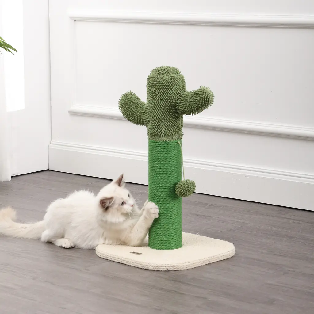 Keep your cats happy and healthy with our cute and sturdy cactus cat scratching post. Covered in soft carpet for climbing, durable jute and sisal for scratching, and equipped with a dangling fuzzy toy for batting. Adorable cactus design looks great in any room.Features:Product Care:About us:Our passion is providing high-quality pet products that enhance the lives of both pets and their owners.