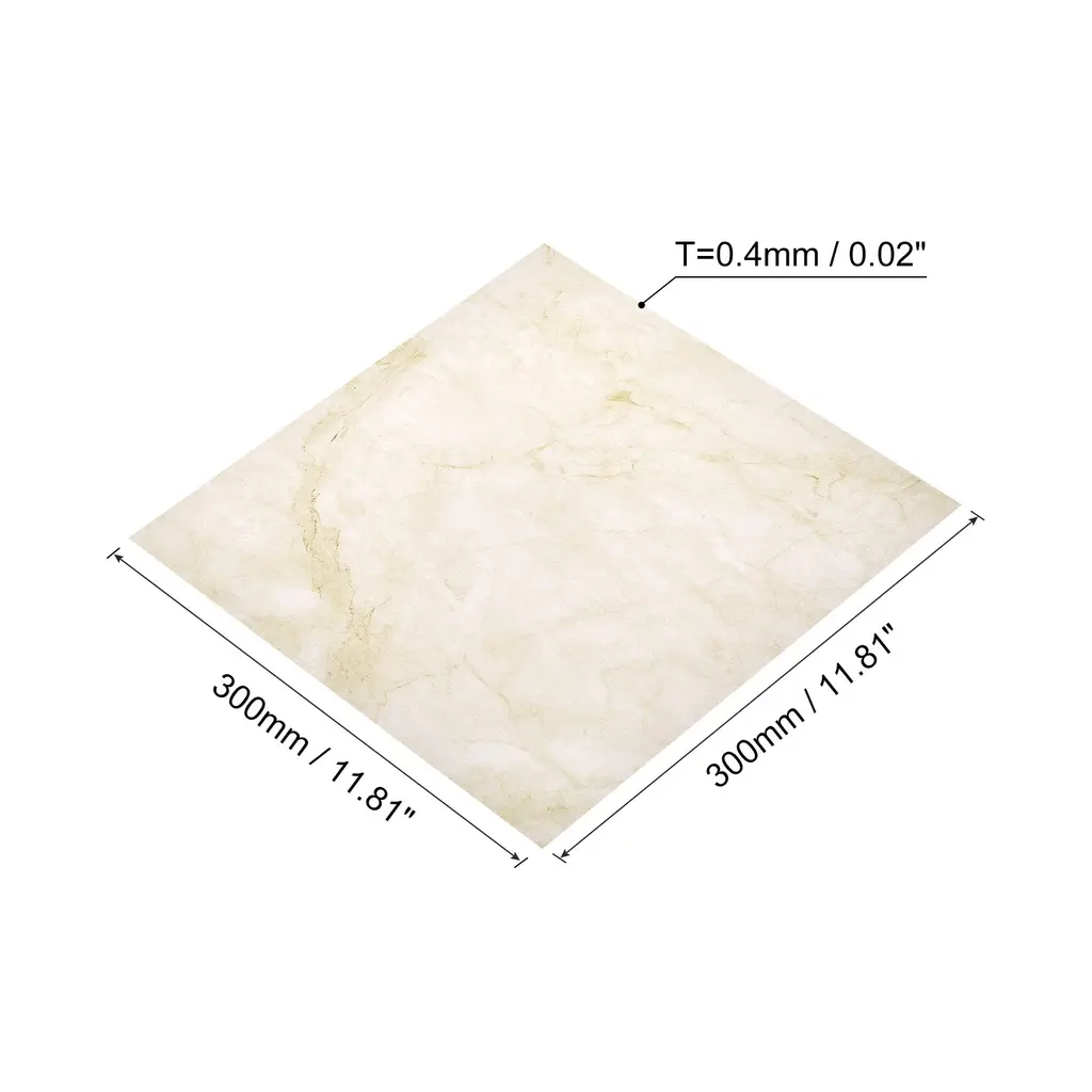 Material: PVC material; Size: 300x300x0.4mm/11.81"x11.81"x0.02"; Color: Light Yellow; Surface: Thickened Frosted; Package Includes: 10 x Self Adhesive Floor TilesMaterial: The adhesive floor tiles are PVC material, with strong adhesion, and the corners do not lift up and are more sticky with use; The look and feel of the marble pattern, give people a feel of simplicity and texture, natural and fashionable.Peel and Stick: Waterproof bathroom floor tiles can be pulled directly when removed, doing no harm to the original floors; No tools, all do is peel the backing and then stick it on the floor. Trim it if needed. allows DIY to install on wood, concrete, vinyl, linoleum, ceramic, or over existing floors.Features: Easy to clean, durable, and requires no maintenance, waterproof, scratch, and dent-resistant. It’s perfect for active homes with busy kitchens, entries, and living areas. give your space a fresh new look.Multi-Purpose: The self-adhesive floor tiles can be used indoors for floors, bathrooms, bedrooms, kitchens, balconies, children's rooms, living rooms, offices, furniture, cabinets, garage, etc.Description:1. Material: The adhesive floor tiles are PVC material, with strong adhesion, and the corners do not lift up and are more sticky with use; The look and feel of the marble pattern, give people a feel of simplicity and texture, natural and fashionable.2. Peel and Stick: Waterproof bathroom floor tiles can be pulled directly when removed, doing no harm to the original floors; No tools, all do is peel the backing and then stick it on the floor. Trim it if needed. allows DIY to install on wood, concrete, vinyl, linoleum, ceramic, or over existing floors.3. Features: Easy to clean, durable, and requires no maintenance, waterproof, scratch, and dent-resistant. It is perfect for active homes with busy kitchens, entries, and living areas. give your space a fresh new look.4. Multi-Purpose: The self-adhesive floor tiles can be used indoors for floors, bathrooms, bedrooms, kitchens, balconies, children's rooms, living rooms, offices, furniture, cabinets, garage, etc.Specifications:Product Name: Waterproof Bathroom Floor TilesMaterial: PVC MaterialSize: 300x300x0.4mm/11.81"x11.81"x0.02"Color: Light YellowSurface: Thickened FrostedPackage Includes:10 x Self Adhesive Floor Tiles