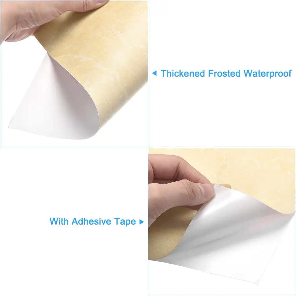 Material: PVC material; Size: 300x300x0.4mm/11.81"x11.81"x0.02"; Color: Yellow; Surface: Thickened Frosted; Package Includes: 4 x Self Adhesive Floor TilesMaterial: The adhesive floor tiles are PVC material, with strong adhesion, and the corners do not lift up and are more sticky with use; The look and feel of the marble pattern, give people a feel of simplicity and texture, natural and fashionable.Peel and Stick: Waterproof bathroom floor tiles can be pulled directly when removed, doing no harm to the original floors; No tools, all do is peel the backing and then stick it on the floor. Trim it if needed. allows DIY to install on wood, concrete, vinyl, linoleum, ceramic, or over existing floors.Features: Easy to clean, durable, and requires no maintenance, waterproof, scratch, and dent-resistant. It’s perfect for active homes with busy kitchens, entries, and living areas. give your space a fresh new look.Multi-Purpose: The self-adhesive floor tiles can be used indoors for floors, bathrooms, bedrooms, kitchens, balconies, children's rooms, living rooms, offices, furniture, cabinets, garage, etc.Description:1. Material: The adhesive floor tiles are PVC material, with strong adhesion, and the corners do not lift up and are more sticky with use; The look and feel of the marble pattern, give people a feel of simplicity and texture, natural and fashionable.2. Peel and Stick: Waterproof bathroom floor tiles can be pulled directly when removed, doing no harm to the original floors; No tools, all do is peel the backing and then stick it on the floor. Trim it if needed. allows DIY to install on wood, concrete, vinyl, linoleum, ceramic, or over existing floors.3. Features: Easy to clean, durable, and requires no maintenance, waterproof, scratch, and dent-resistant. It is perfect for active homes with busy kitchens, entries, and living areas. give your space a fresh new look.4. Multi-Purpose: The self-adhesive floor tiles can be used indoors for floors, bathrooms, bedrooms, kitchens, balconies, children's rooms, living rooms, offices, furniture, cabinets, garage, etc.Specifications:Product Name: Waterproof Bathroom Floor TilesMaterial: PVC MaterialSize: 300x300x0.4mm/11.81"x11.81"x0.02"Color: YellowSurface: Thickened FrostedPackage Includes:4 x Self Adhesive Floor Tiles