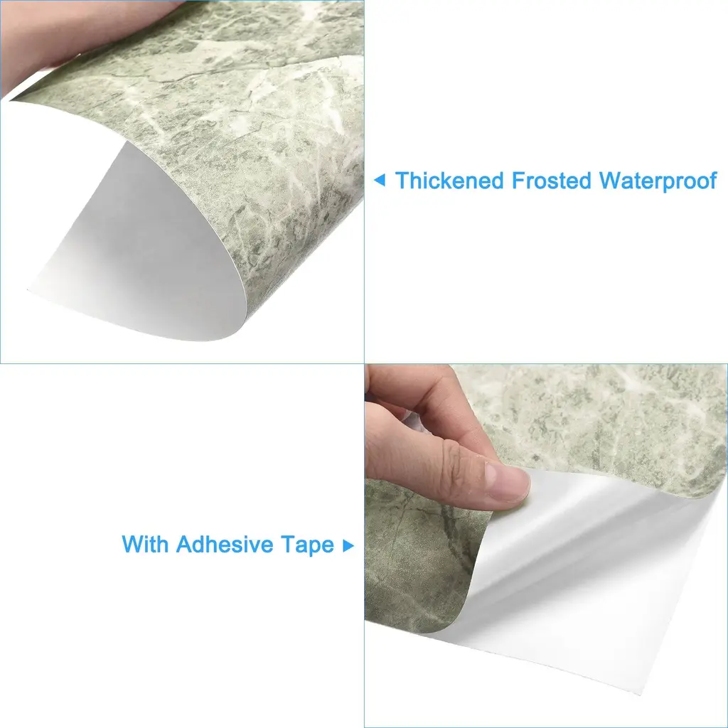 Material: PVC material; Size: 300x300x0.4mm/11.81"x11.81"x0.02"; Color: Light Grey; Surface: Thickened Frosted; Package Includes: 4 x Self Adhesive Floor TilesMaterial: The adhesive floor tiles are PVC material, with strong adhesion, and the corners do not lift up and are more sticky with use; The look and feel of the marble pattern, give people a feel of simplicity and texture, natural and fashionable.Peel and Stick: Waterproof bathroom floor tiles can be pulled directly when removed, doing no harm to the original floors; No tools, all do is peel the backing and then stick it on the floor. Trim it if needed. allows DIY to install on wood, concrete, vinyl, linoleum, ceramic, or over existing floors.Features: Easy to clean, durable, and requires no maintenance, waterproof, scratch, and dent-resistant. It’s perfect for active homes with busy kitchens, entries, and living areas. give your space a fresh new look.Multi-Purpose: The self-adhesive floor tiles can be used indoors for floors, bathrooms, bedrooms, kitchens, balconies, children's rooms, living rooms, offices, furniture, cabinets, garage, etc.Description:1. Material: The adhesive floor tiles are PVC material, with strong adhesion, and the corners do not lift up and are more sticky with use; The look and feel of the marble pattern, give people a feel of simplicity and texture, natural and fashionable.2. Peel and Stick: Waterproof bathroom floor tiles can be pulled directly when removed, doing no harm to the original floors; No tools, all do is peel the backing and then stick it on the floor. Trim it if needed. allows DIY to install on wood, concrete, vinyl, linoleum, ceramic, or over existing floors.3. Features: Easy to clean, durable, and requires no maintenance, waterproof, scratch, and dent-resistant. It is perfect for active homes with busy kitchens, entries, and living areas. give your space a fresh new look.4. Multi-Purpose: The self-adhesive floor tiles can be used indoors for floors, bathrooms, bedrooms, kitchens, balconies, children's rooms, living rooms, offices, furniture, cabinets, garage, etc.Specifications:Product Name: Waterproof Bathroom Floor TilesMaterial: PVC MaterialSize: 300x300x0.4mm/11.81"x11.81"x0.02"Color: Light GreySurface: Thickened FrostedPackage Includes:4 x Self Adhesive Floor Tiles
