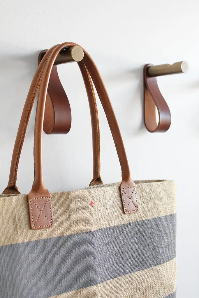 At Herringbone Designed we believe in the power of collaboration. To that end, we have developed a number of fruitful partnerships with talented artists and manufacturers both locally and abroad. The fruits of these labors are detailed below and are created under the moniker of HDCollabs.Our first collaboration is with gifted design duo Carmen Sosich & Matthew von Sturmer of Blacksand Bronze, Waiheke Island, New Zealand. These two masters of cast bronze have brought our Peggy the Coat hook brilliantly to life. Hats off! Mudrooms rejoice! Put dog leads, hats, and umbrellas in their place. Knotched coat hook of bronze & belting leather with concealed screw fastener.Dimensions:Bronze peg 1" diameter x 3.5" lengthLeather strap 1.375" width x 6.25" lengthInstallation: Hooks attach to the wall using a hidden back mounted screw.