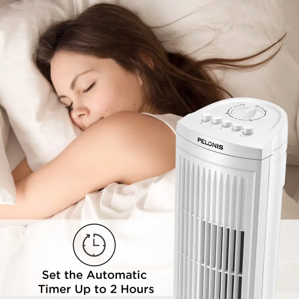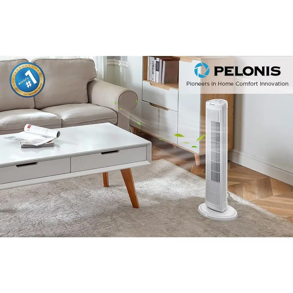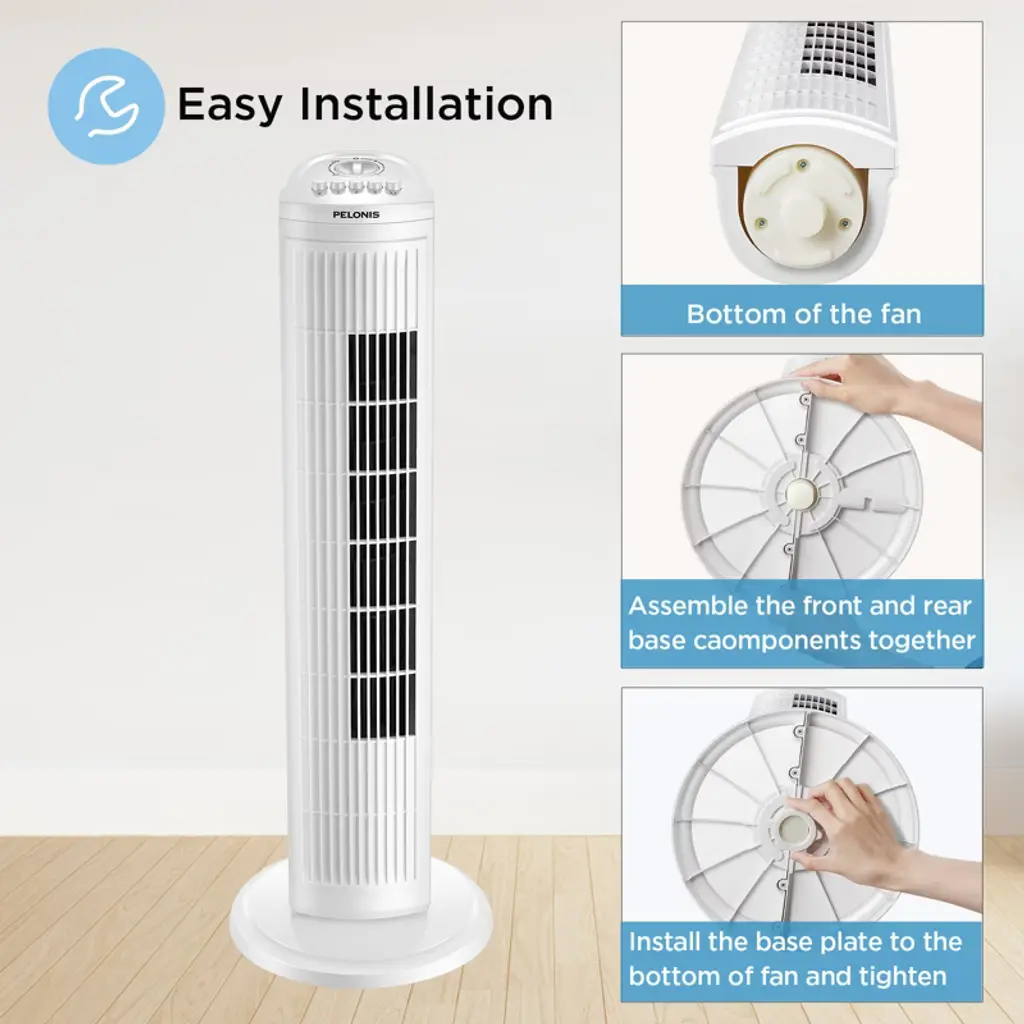 PELONIS 30" 3-Speed Oscillating Tower Fan with 3 Speed Settings and an Auto-Off Timer, Standing Fan, White