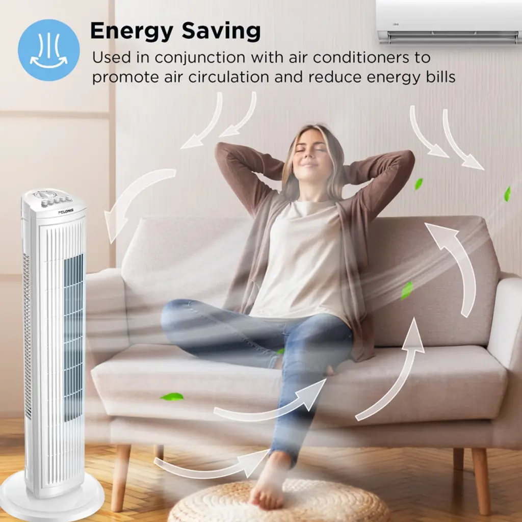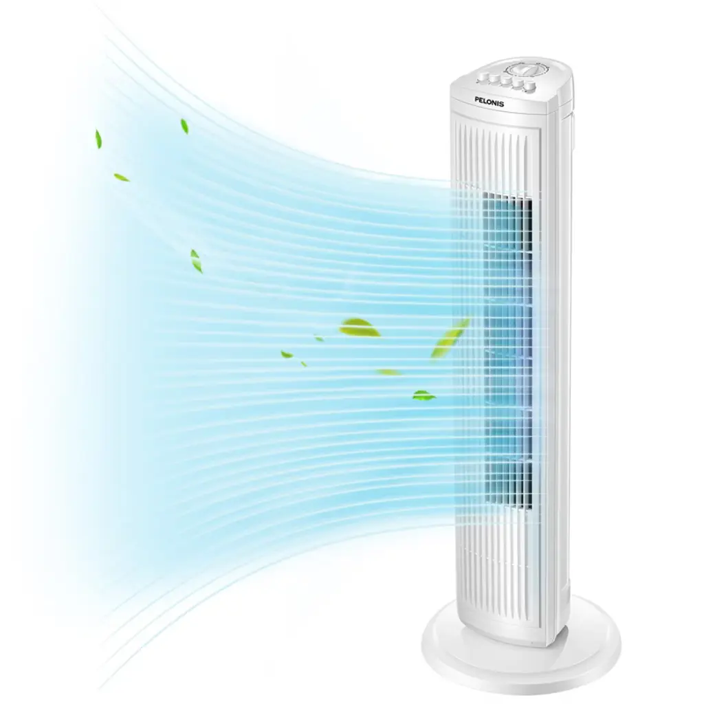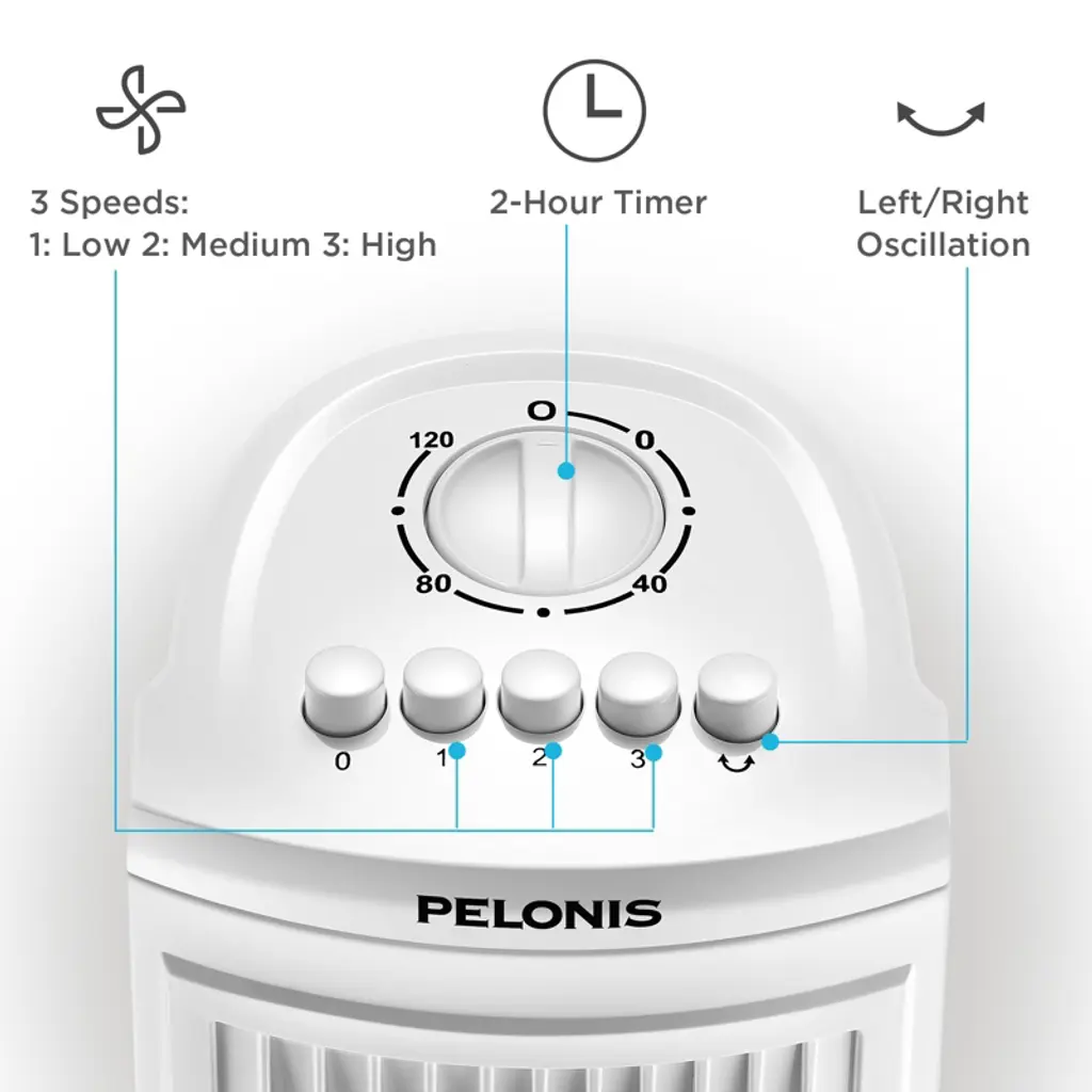 PELONIS 30" 3-Speed Oscillating Tower Fan with 3 Speed Settings and an Auto-Off Timer, Standing Fan, White