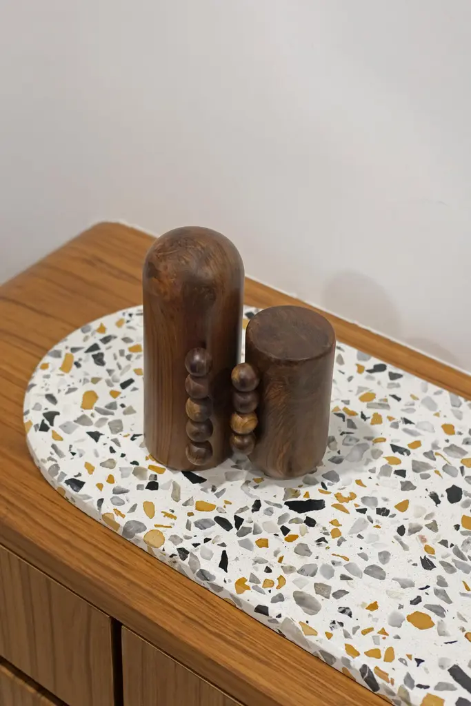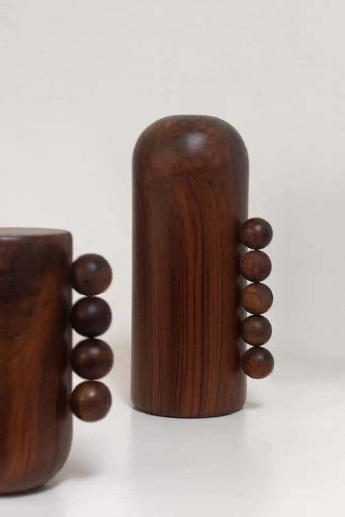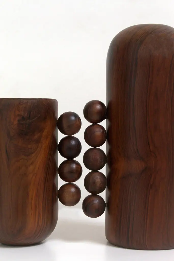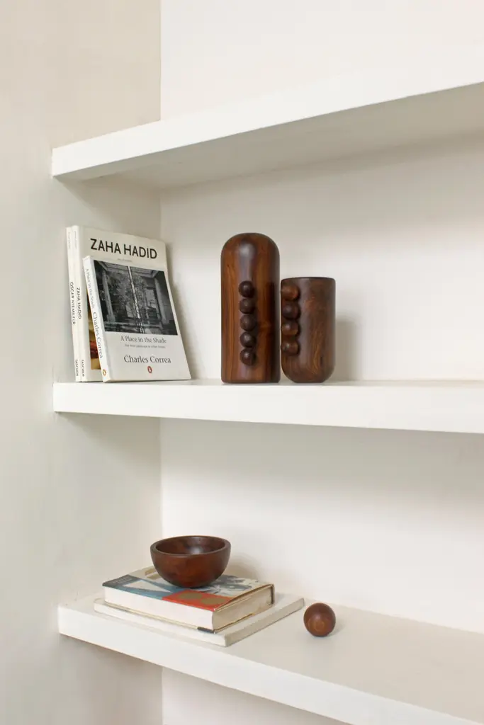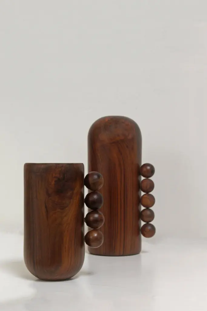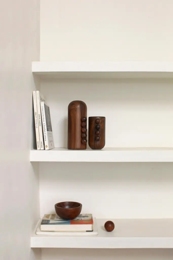 Pelotas Decor Objects by Studio IndigeneDimensions: D 10.16 x W 7.62 x H 15.24 cm D 11.43 x W 8.89 x H 22.86 cmMaterials: Reclaimed Teak Wood.Colors Brown, Natural Wooden Finish. The Pelotas duo stand in their simple silhouette, adorned by the woodengrain unique to each piece. The Pelotas will elevate your space with the warmth and charm of their handcrafted form.Studio Indigene looks at objects of varied scale and functionality; objects of decor and daily use. All the designs incline toward achieving clean lines and curves.The designs are minimalistic, with a keen experimentation of volumetric configuration and combining one or two materials with a base material, our favourite - wood.The studio is a medium of projecting our design sensibilities onto objects of utility and décor, trying to achieve visually appealing ratio and proportion. Our designs are realised by skilful handcrafting of our woodworkers; the process behind the making of each product is artful. Well-seasoned wood, finishing materials of the best quality are also attributes that transfigure our products; give them a premium form. Each product is singular, in the realest sense, at our studio.Studio Indigene is the brainchild of two architects - Tanvi Deolekar & Shubham Mestry. Meet our founders, who form the small team at Studio Indigene.