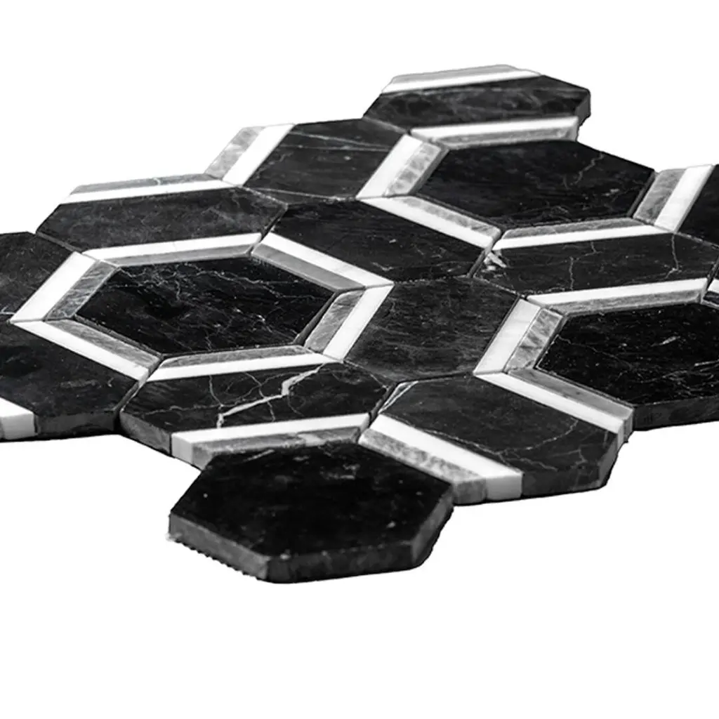 Pelta Orb 13" X 11" Hexagon Marble Floor And Backsplash Wall Tile - 1 Sheet (0.84 Sq. Ft.) - Nero Blend