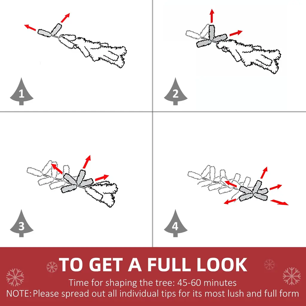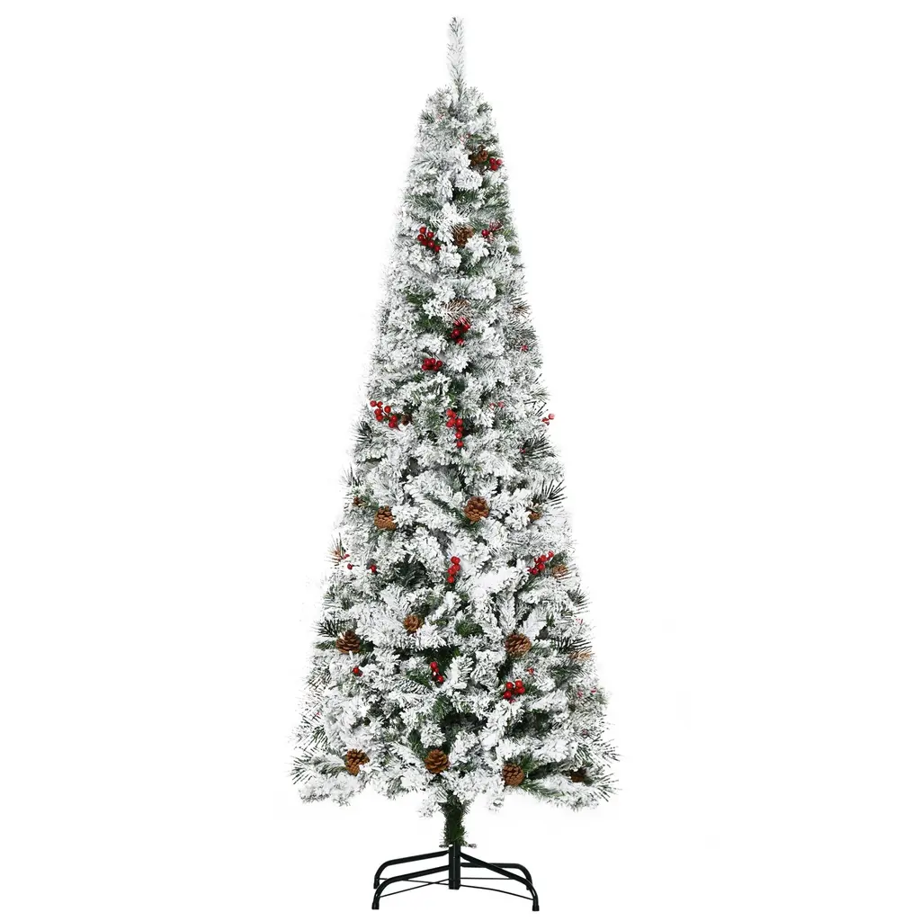 Product FeaturesSeriously No-Hassle: If you're looking for an unlit artificial Christmas tree that holds its shape and is a safer option for your family, look no further than this artificial Christmas tree. It is decorated in red berry clusters, pinecones, and snow-flocked leaves, so you get the beauty of a traditional tree without the maintenance of a fresh-cut tree (no needles!).Make Fluffing Fun: The only time you're really spending is fluffing the pencil Christmas tree, and auto open design helps you save the time. Fluffing can be a family-friendly way to decorate and share some hot chocolate, or make it a game: race against the clock, compete to see who fluffs the most, create an obstacle course.More Ambience Is Better: A flame-retardent realistic pine tree decor is going to give some extra peace-of-mind in case you have to put your tree next to your fireplace. Of course, it's great ambience on its own, but a fireplace...I mean, come on.Easy, Easy, Easy: Here's where the rubber meets the road: you get a slim cardboard box (easy storage). You get three pieces to put together (easy assembly). You get a lightweight and strong base. Even though it's a fake Christmas tree, we've got you covered start to finish.Flocked Christmas Tree Information: In order to get a full appearance, please spread out all individual tips to get the best possible look from the tree.