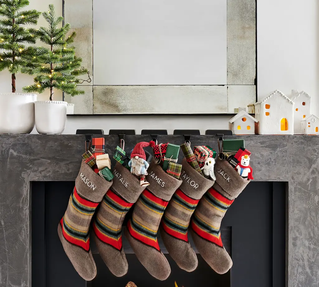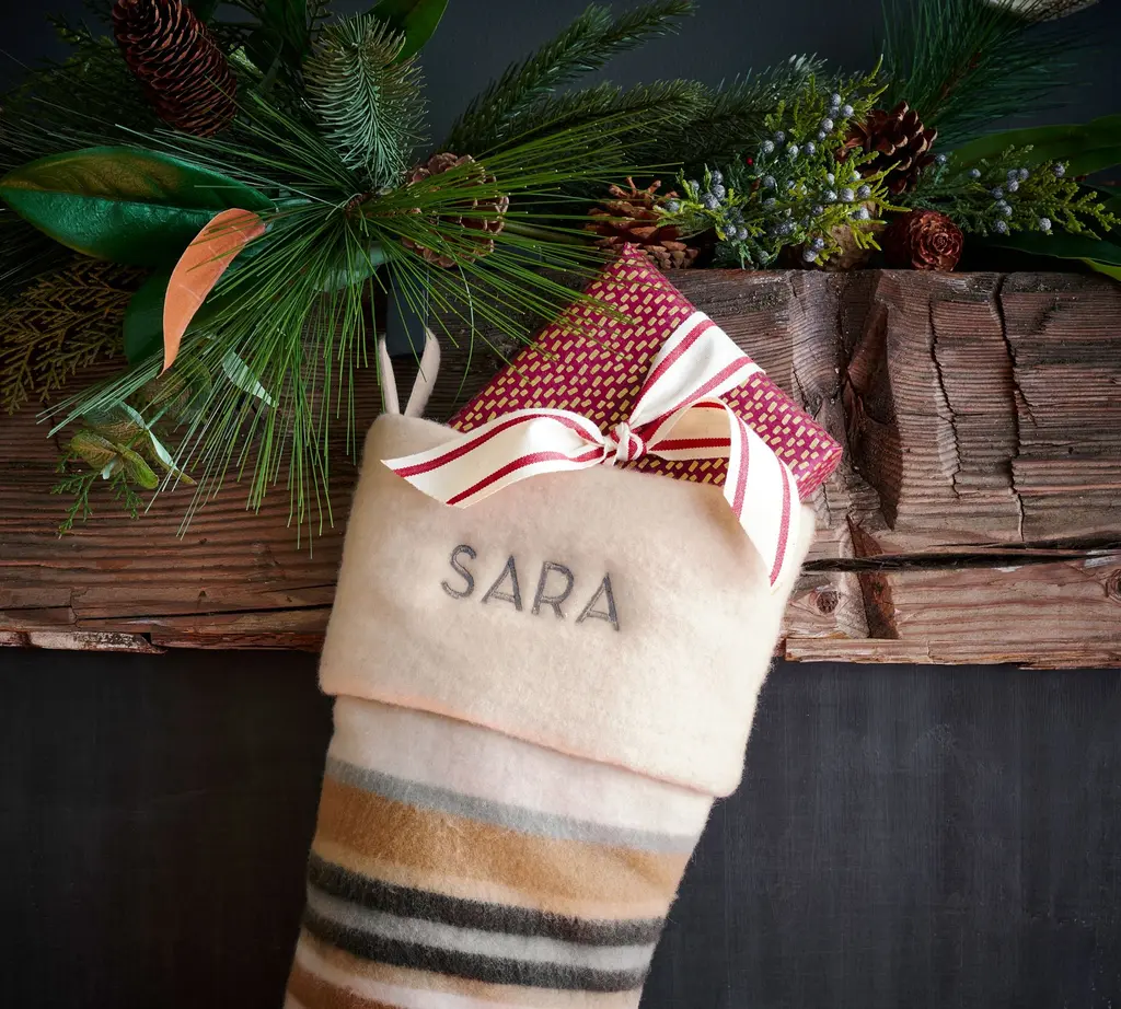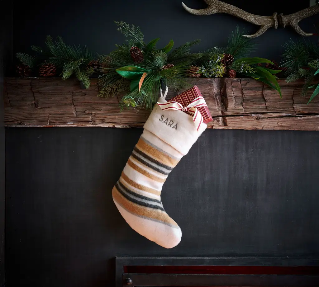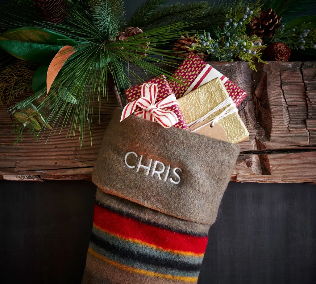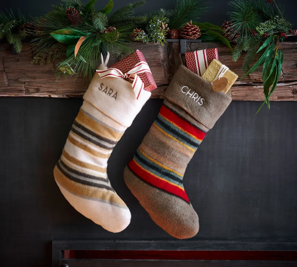 Dating back to the 19th-century Pacific Northwest, the Pendleton textile mill modeled its Yakima stripe on the wool blankets used by shepherds. The simple good looks of that heritage design inspired our all-American holiday stocking. Turn it into a keepsake with monogramming before you hang it by the chimney with care.