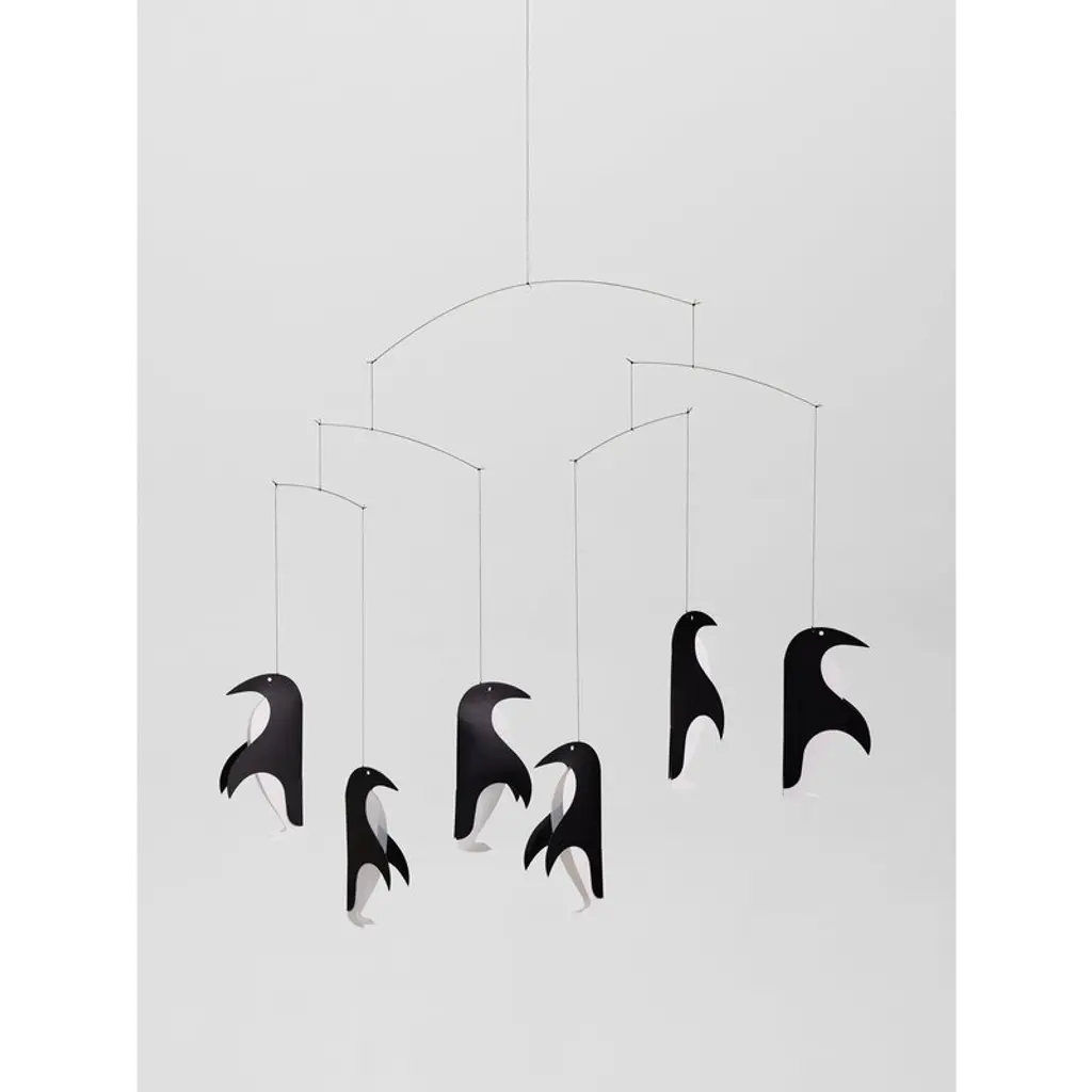 The simple Penguin Talk Mobile by Ole Flensted is made for all animal lovers. These six hanging penguins are a perfect gift for a child. Handmade in Denmark, the Flensted mobiles are unique and stylish elements in home décor and public spaces. While floating in the air, the mobile catches the eye and envokes interest and creativity in both children and adults. Every Flendsted mobile is designed to constantly move with the air currents in a calm, balanced manner.