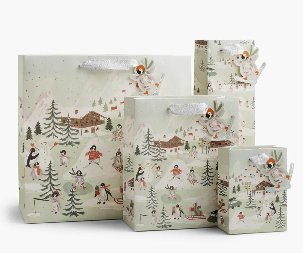 Giving gets even more special with our gift bags, which feature charming extras like glitter silver foil accents, cotton ribbon handles, and a coordinating “To" and “From" tag.