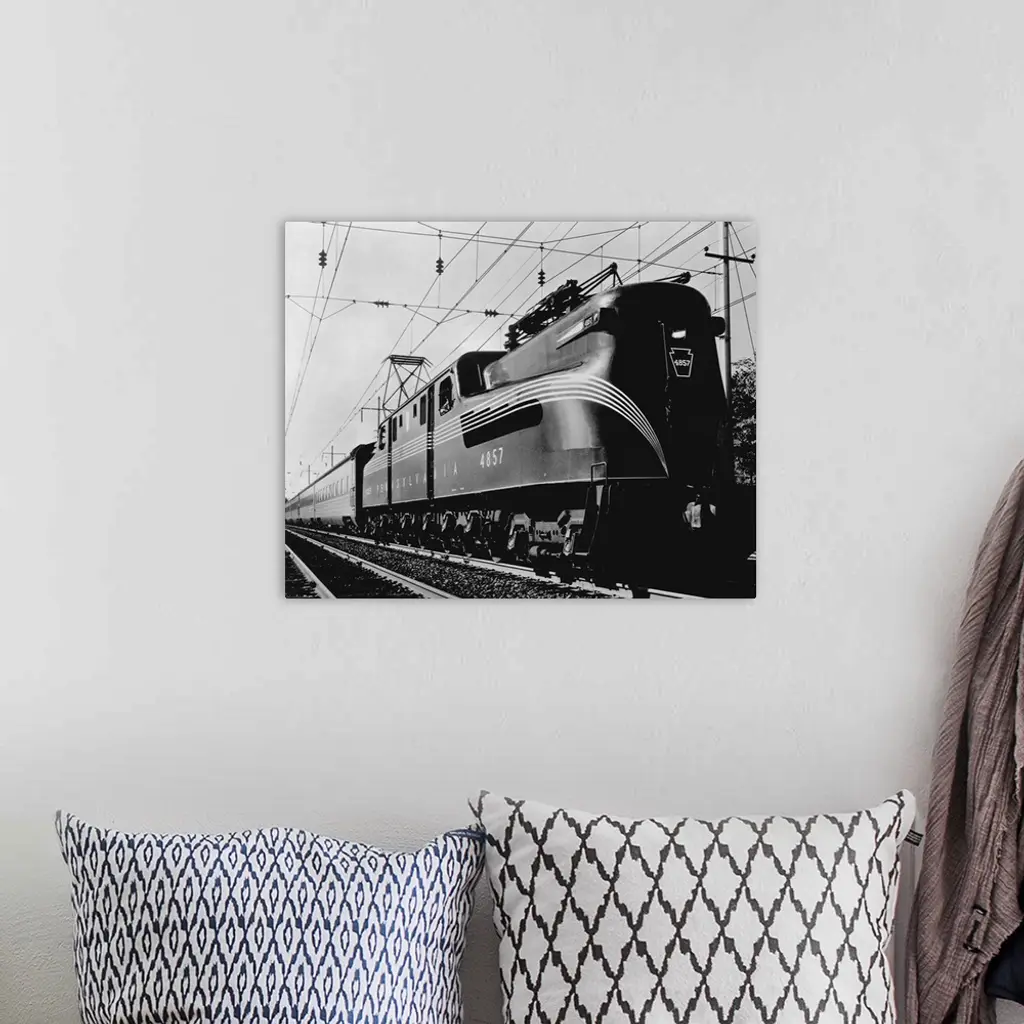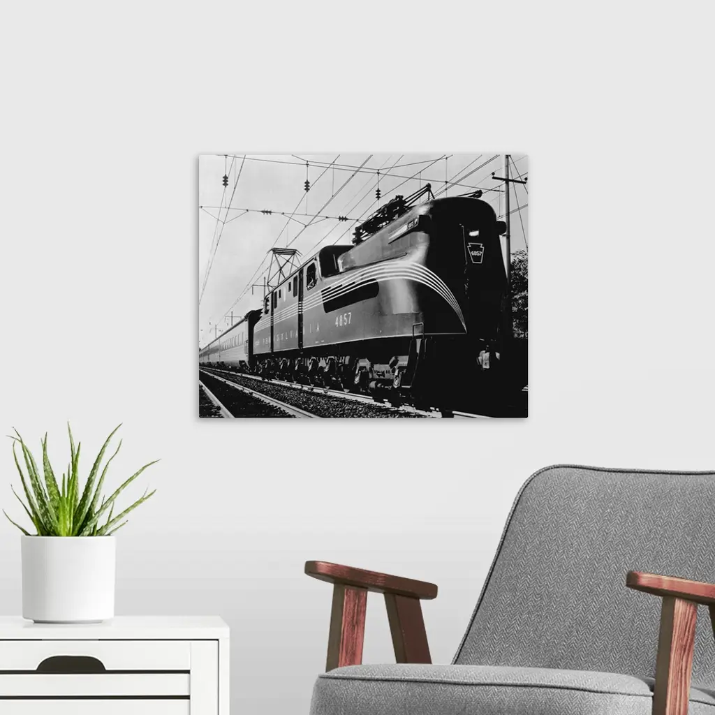 The Broadway Limited, an all sleeping car GG-1 type electric train on the Pennsylvania Railroad main line between New York and Chicago, ca. 1938.