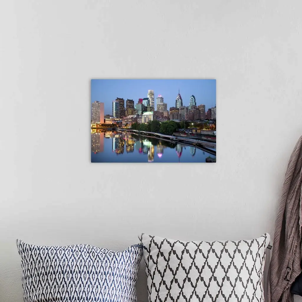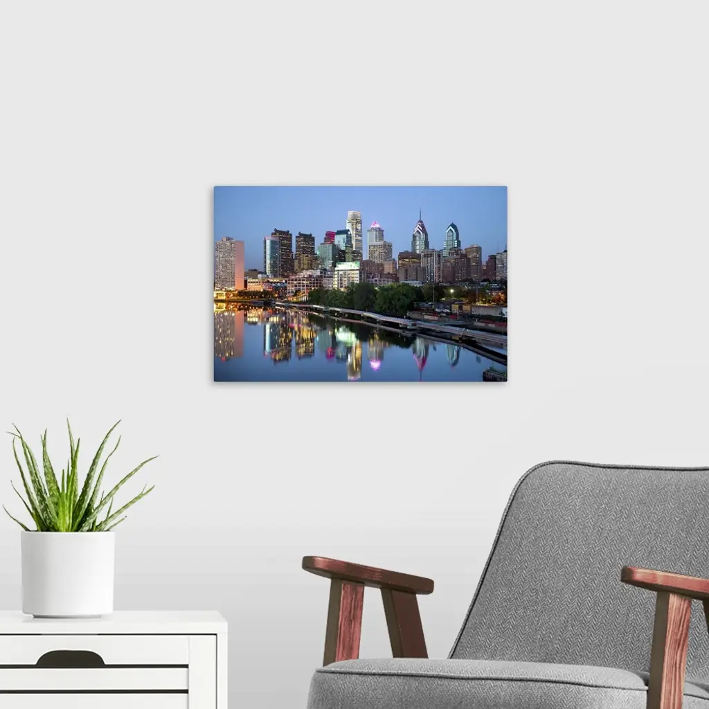 USA, Pennsylvania, Philadelphia, City skyline over the Delaware River.