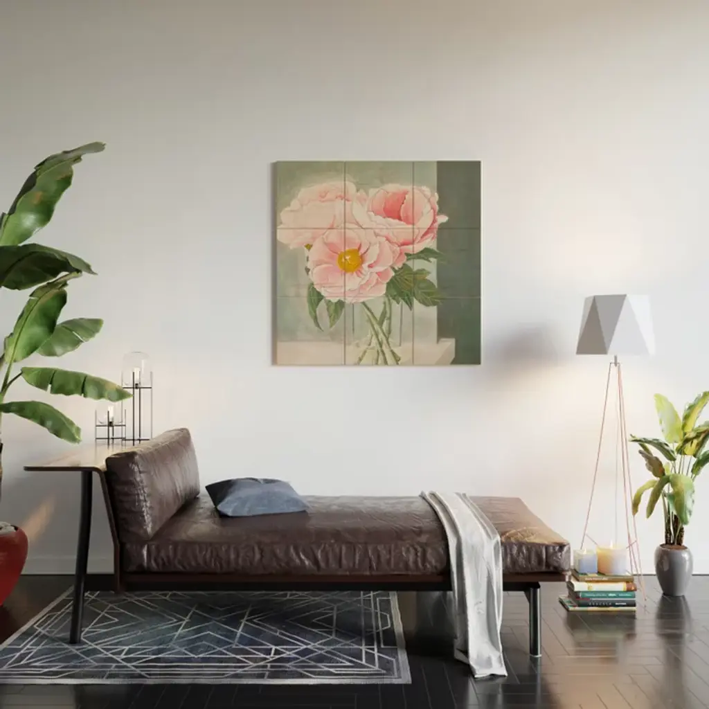 Peonies In The Window Still Life Wood Wall Art