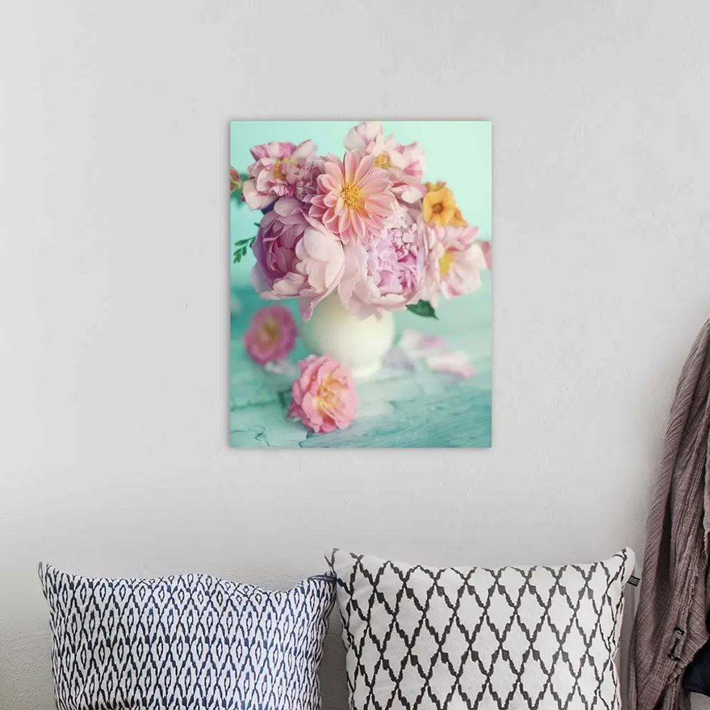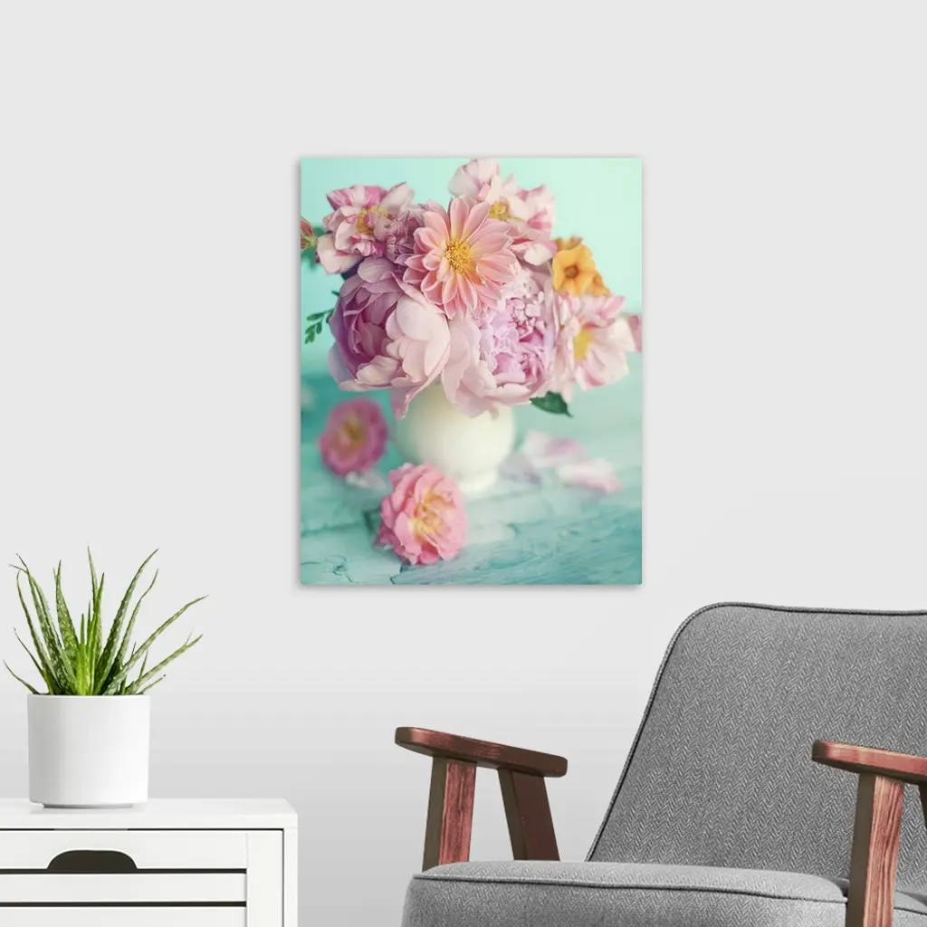 Peonies On Teal wall art for home and office decor. Discover canvas art prints, photos, mural, big canvas art and framed wall art in GreatBigCanvas.com's varied collections.