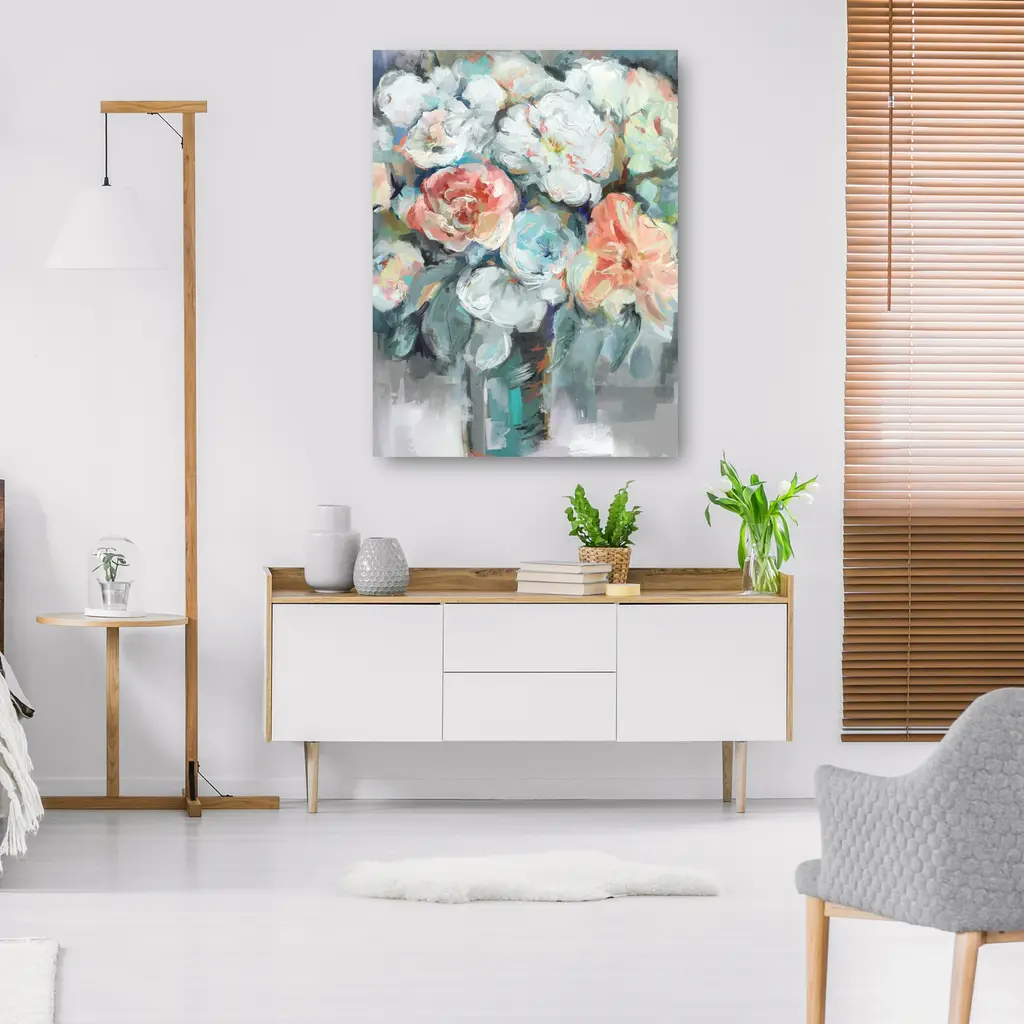 The beautiful, high-quality Peony Play Gallery Wrapped Canvas is sure to be a stunning addition to any decor theme. Mounting hardware included.