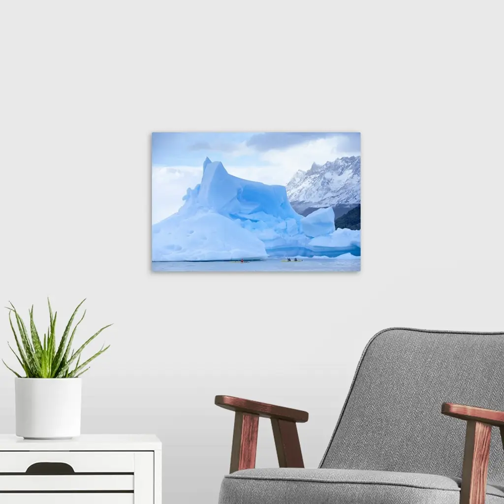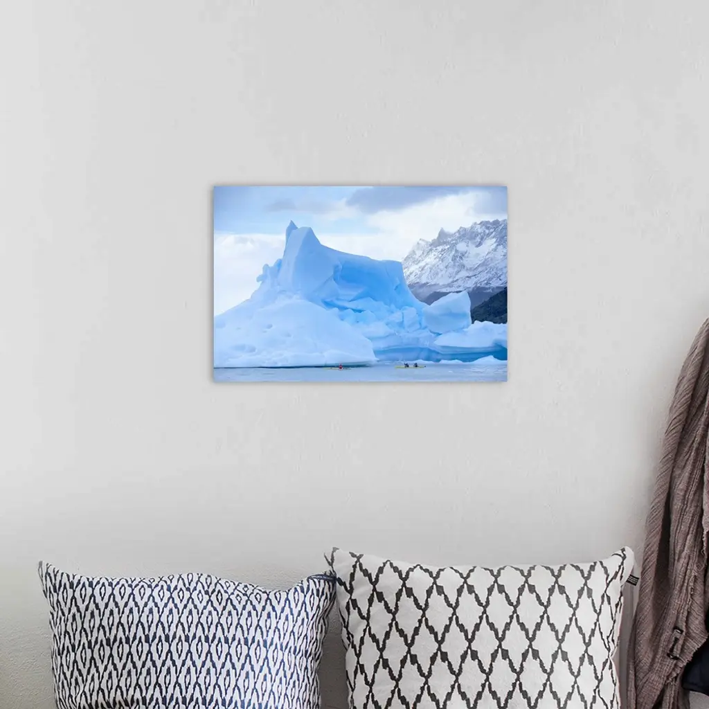 People kayaking near floating icebergs, Patagonian Andes, Chile wall art for home and office decor. Discover canvas art prints, photos, mural, big canvas art and framed wall art in GreatBigCanvas.com's varied collections.