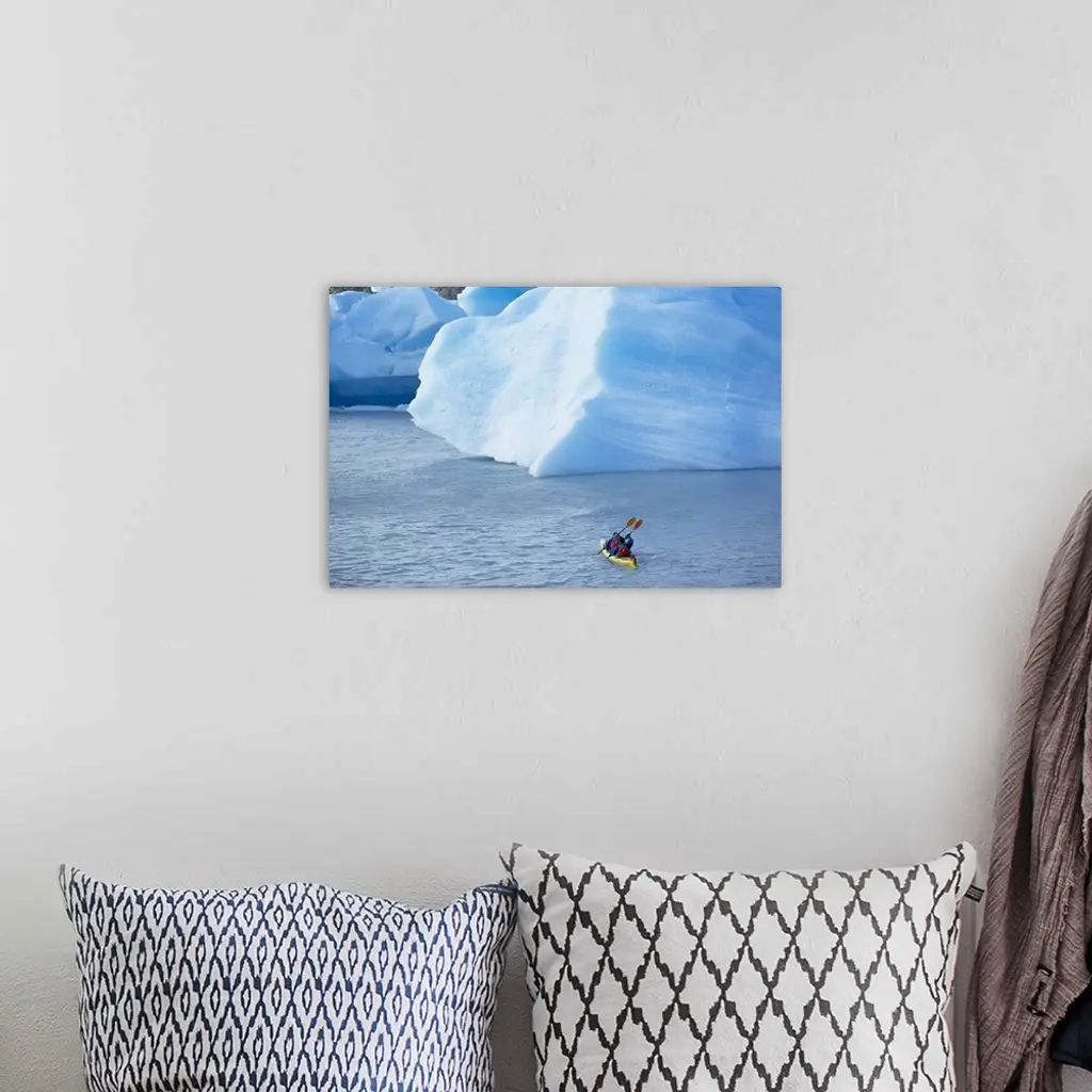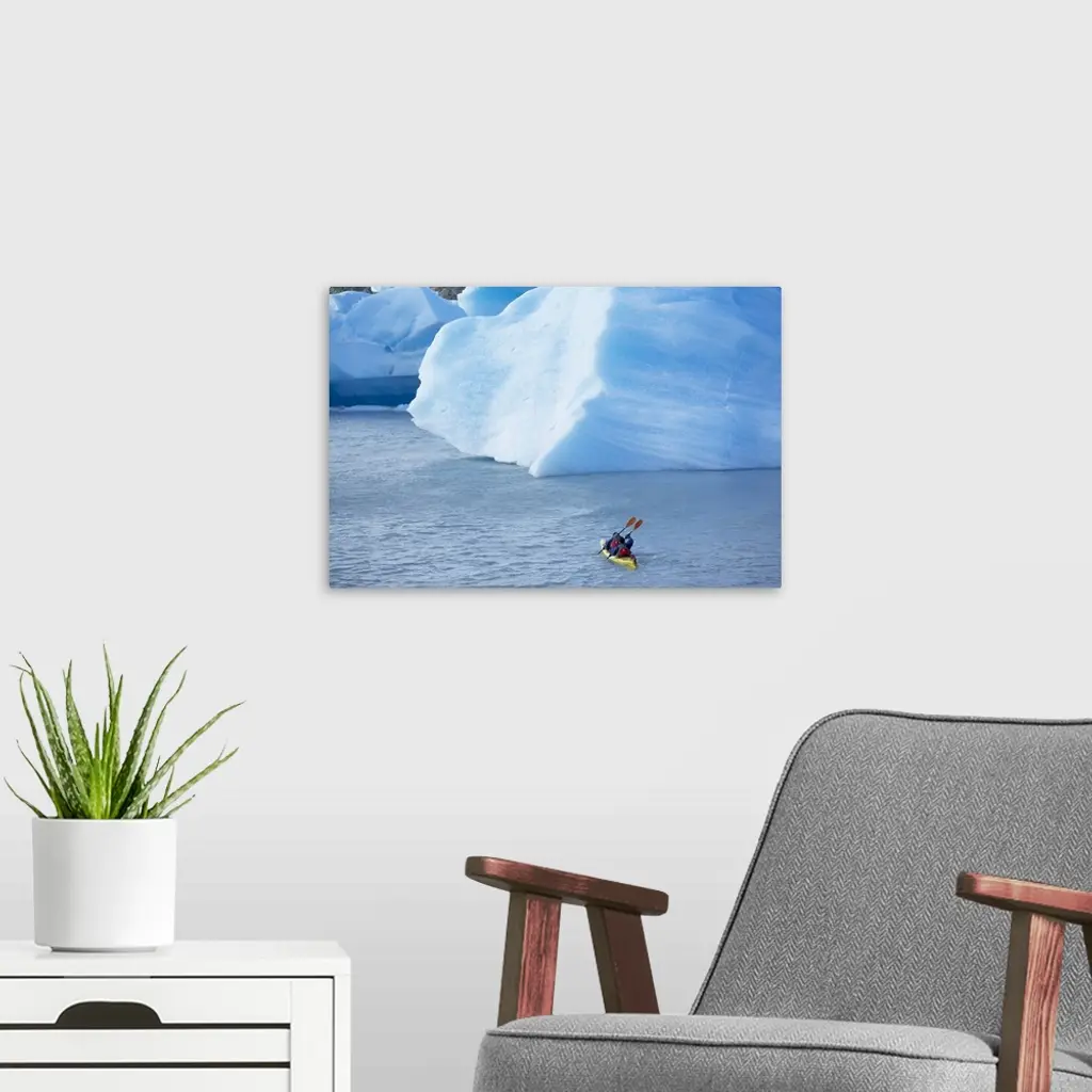 People kayaking near floating icebergs, Patagonian Andes, Chile wall art for home and office decor. Discover canvas art prints, photos, mural, big canvas art and framed wall art in GreatBigCanvas.com's varied collections.